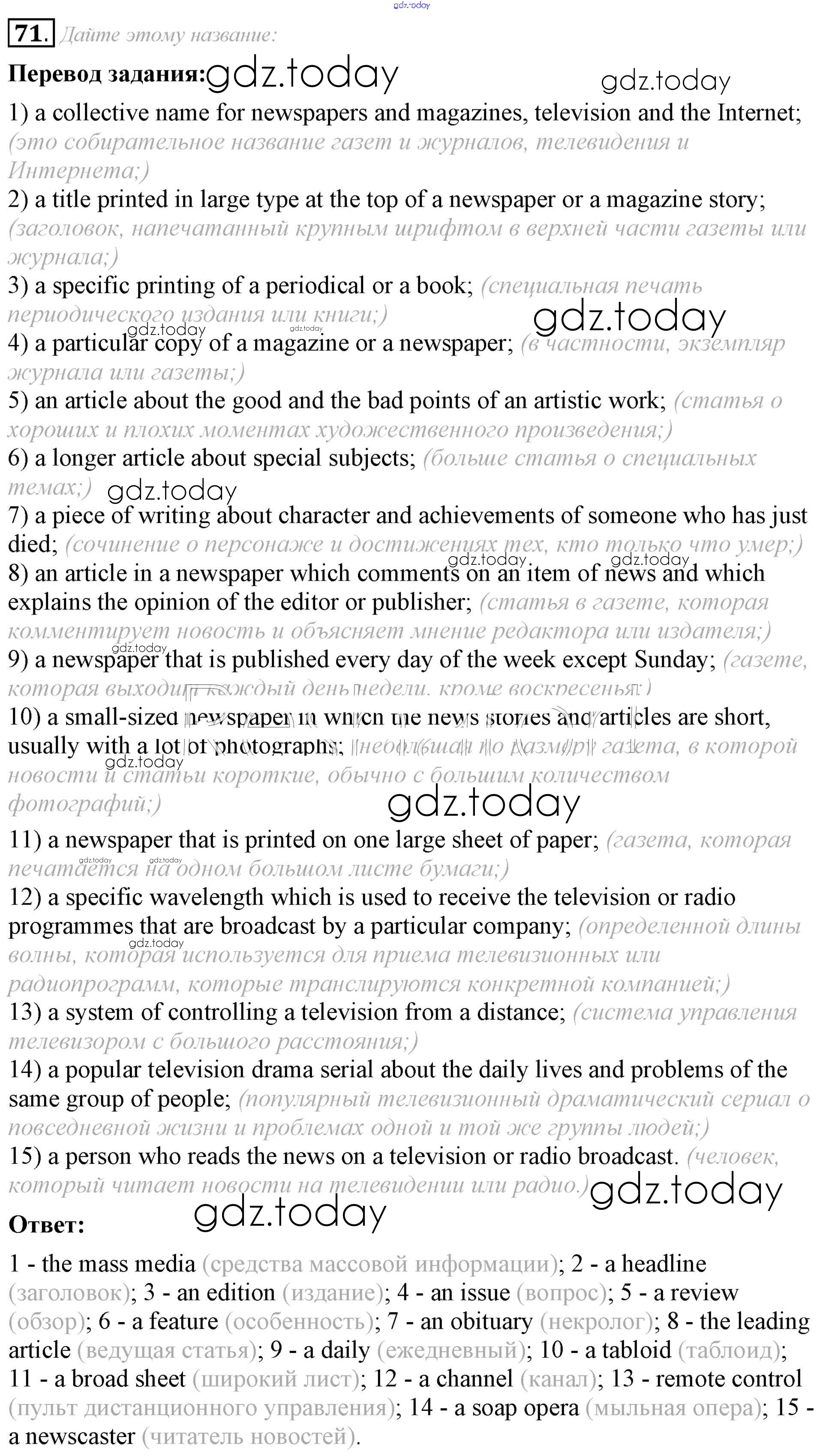 На страницах сайта gdz.today вы найдете учебный и вспомогательный материал, направленный на улучшения знаний школьной программы. ГДЗ - онлайн мир знаний Решение к Unit 6 71 Учебнику по Английскому языку для 8 класса Афанасьева, Михеева Углубленный уровень Просвещение 2014