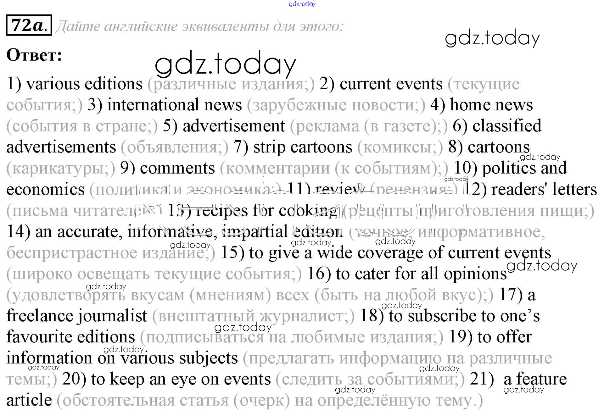 На страницах сайта gdz.today вы найдете учебный и вспомогательный материал, направленный на улучшения знаний школьной программы. ГДЗ - онлайн мир знаний Решение к Unit 6 72a Учебнику по Английскому языку для 8 класса Афанасьева, Михеева Углубленный уровень Просвещение 2014
