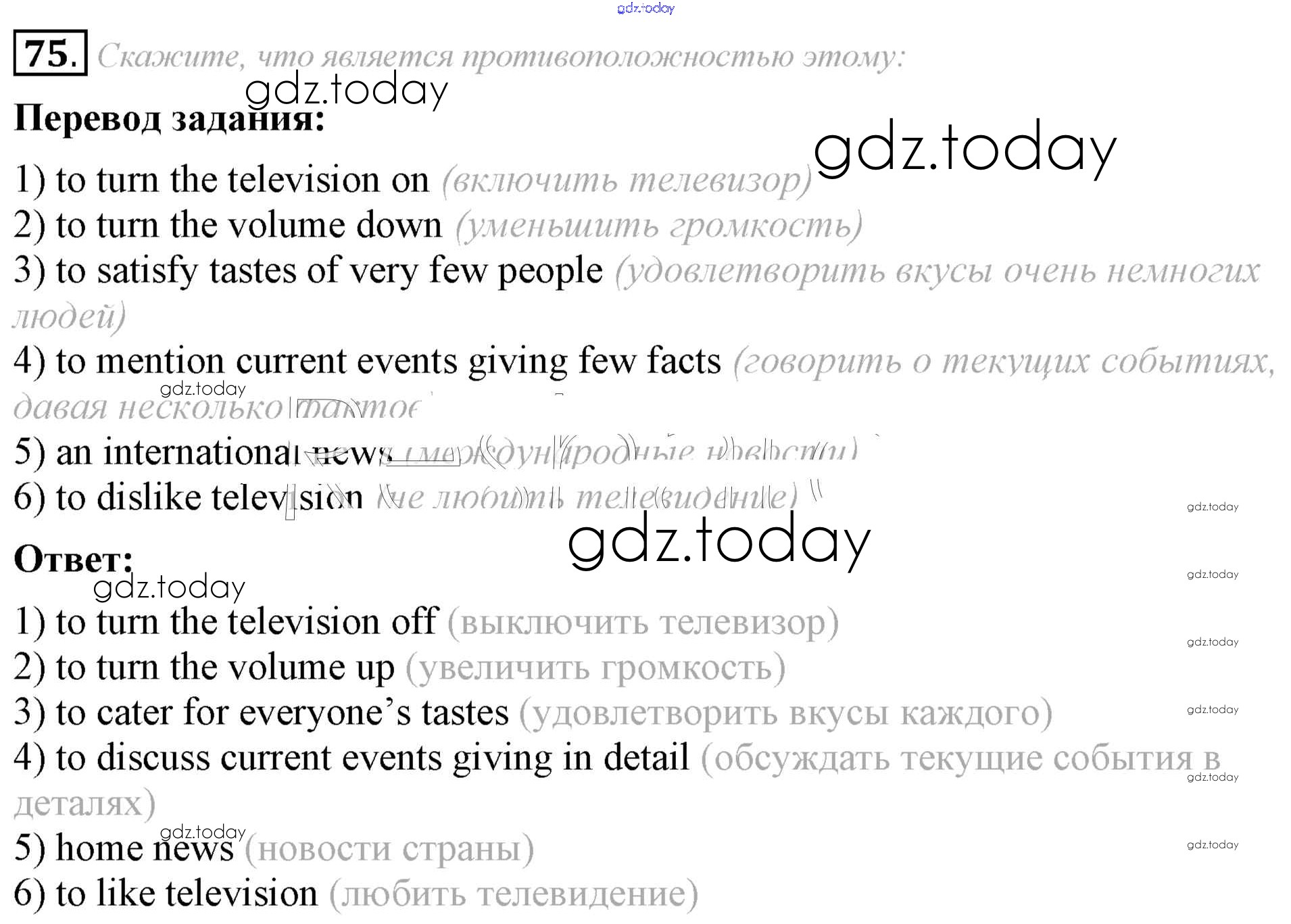 На страницах сайта gdz.today вы найдете учебный и вспомогательный материал, направленный на улучшения знаний школьной программы. ГДЗ - онлайн мир знаний Решение к Unit 6 75 Учебнику по Английскому языку для 8 класса Афанасьева, Михеева Углубленный уровень Просвещение 2014