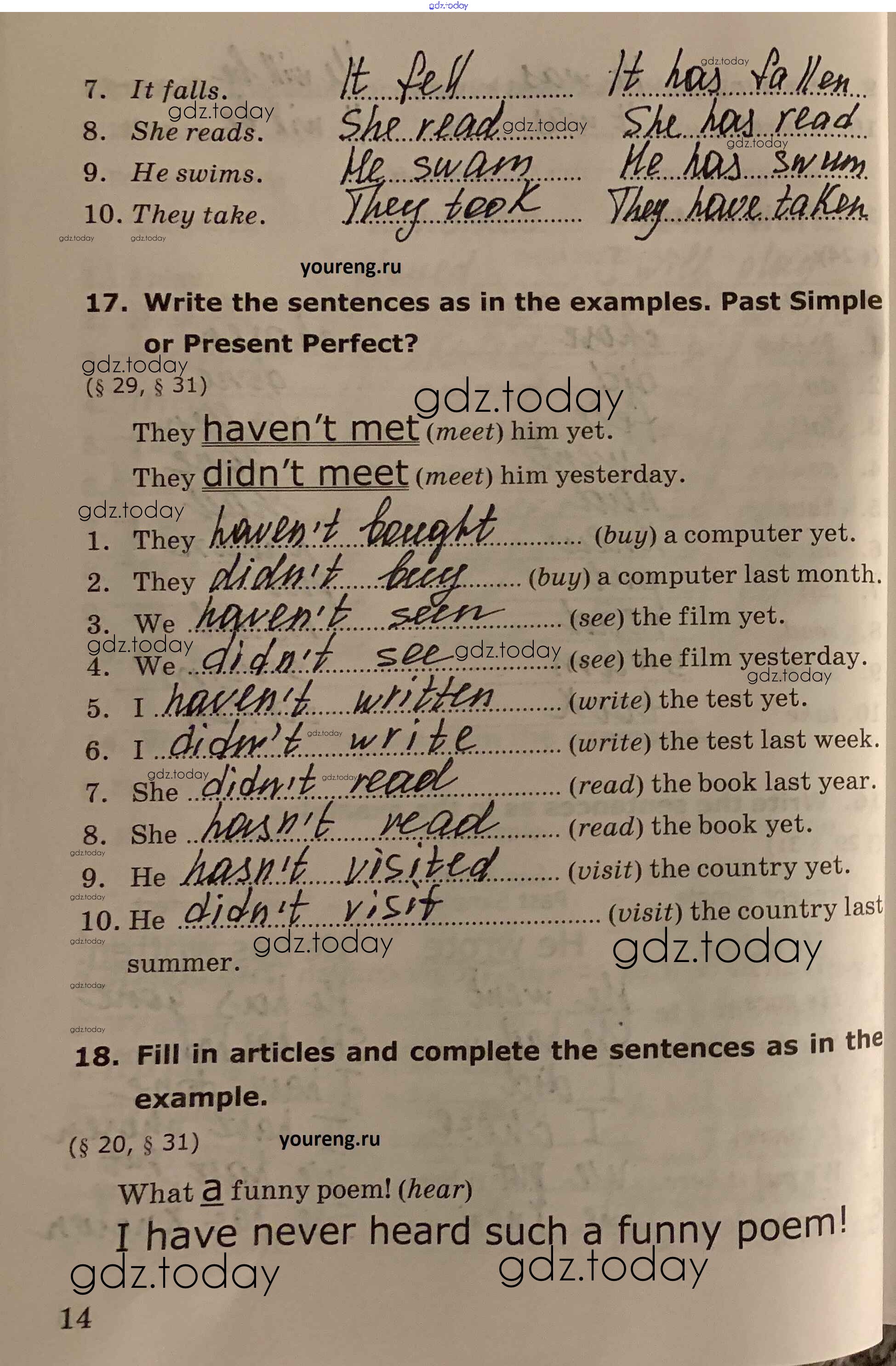 На страницах сайта gdz.today вы найдете учебный и вспомогательный материал, направленный на улучшения знаний школьной программы. ГДЗ - онлайн мир знаний Unit 1 Решение к части 1 стр.14 Сборнику упражнений по Английскому языку для 8 класса Барашкова Экзамен УМК 2018
