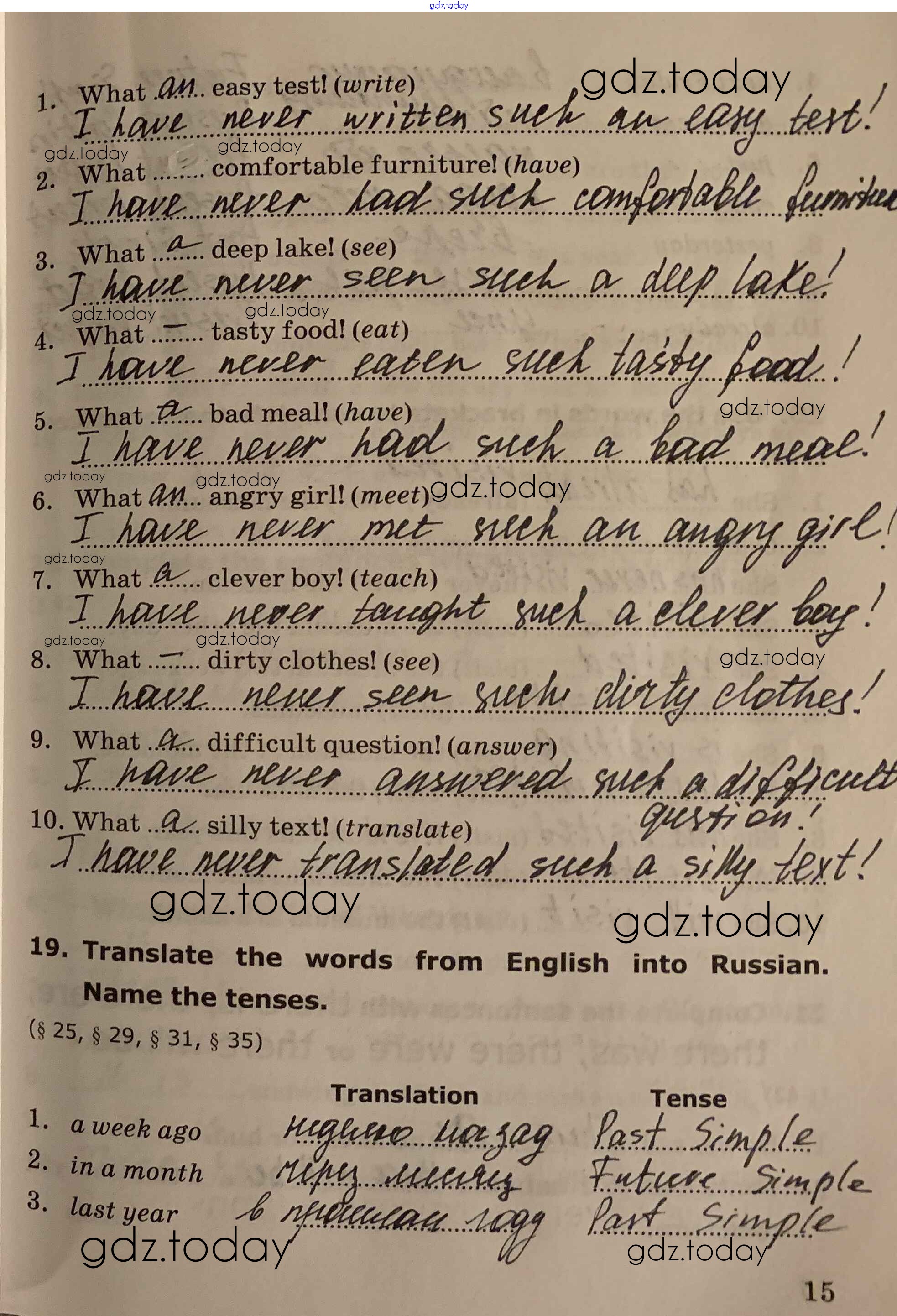 На страницах сайта gdz.today вы найдете учебный и вспомогательный материал, направленный на улучшения знаний школьной программы. ГДЗ - онлайн мир знаний Unit 1 Решение к части 1 стр.15 Сборнику упражнений по Английскому языку для 8 класса Барашкова Экзамен УМК 2018