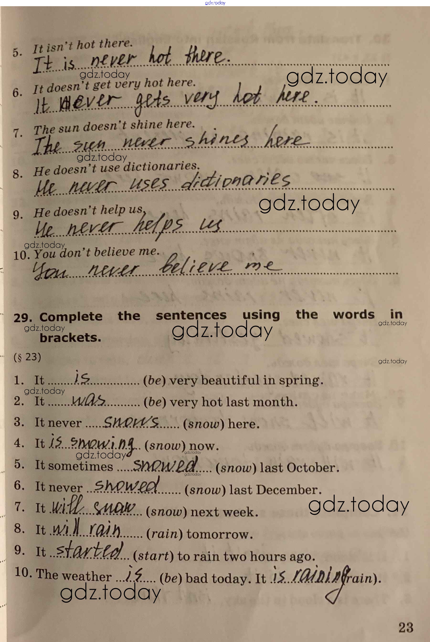 На страницах сайта gdz.today вы найдете учебный и вспомогательный материал, направленный на улучшения знаний школьной программы. ГДЗ - онлайн мир знаний Unit 1 Решение к части 1 стр.23 Сборнику упражнений по Английскому языку для 8 класса Барашкова Экзамен УМК 2018