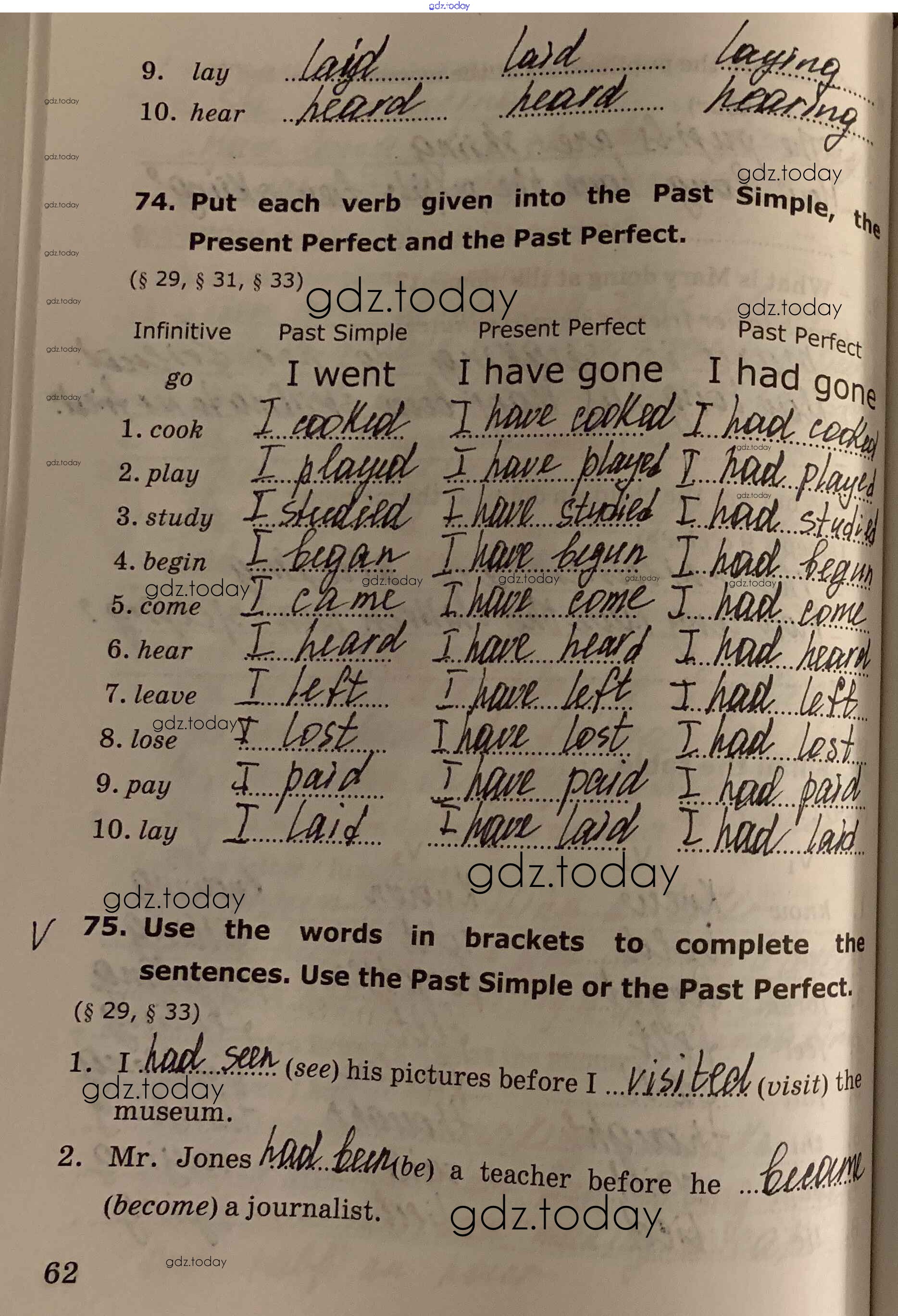 На страницах сайта gdz.today вы найдете учебный и вспомогательный материал, направленный на улучшения знаний школьной программы. ГДЗ - онлайн мир знаний Unit 1 Решение к части 1 стр.62 Сборнику упражнений по Английскому языку для 8 класса Барашкова Экзамен УМК 2018