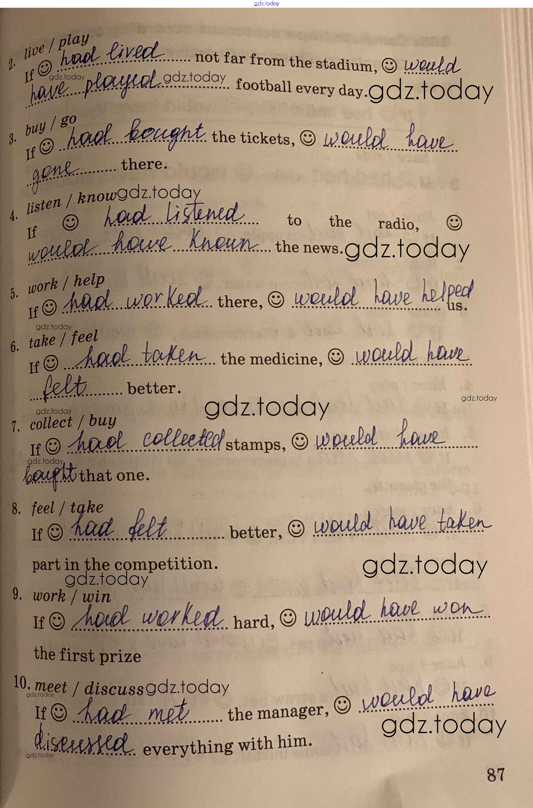 На страницах сайта gdz.today вы найдете учебный и вспомогательный материал, направленный на улучшения знаний школьной программы. ГДЗ - онлайн мир знаний Unit 2 Решение к части 1 стр.87 Сборнику упражнений по Английскому языку для 8 класса Барашкова Экзамен УМК 2018