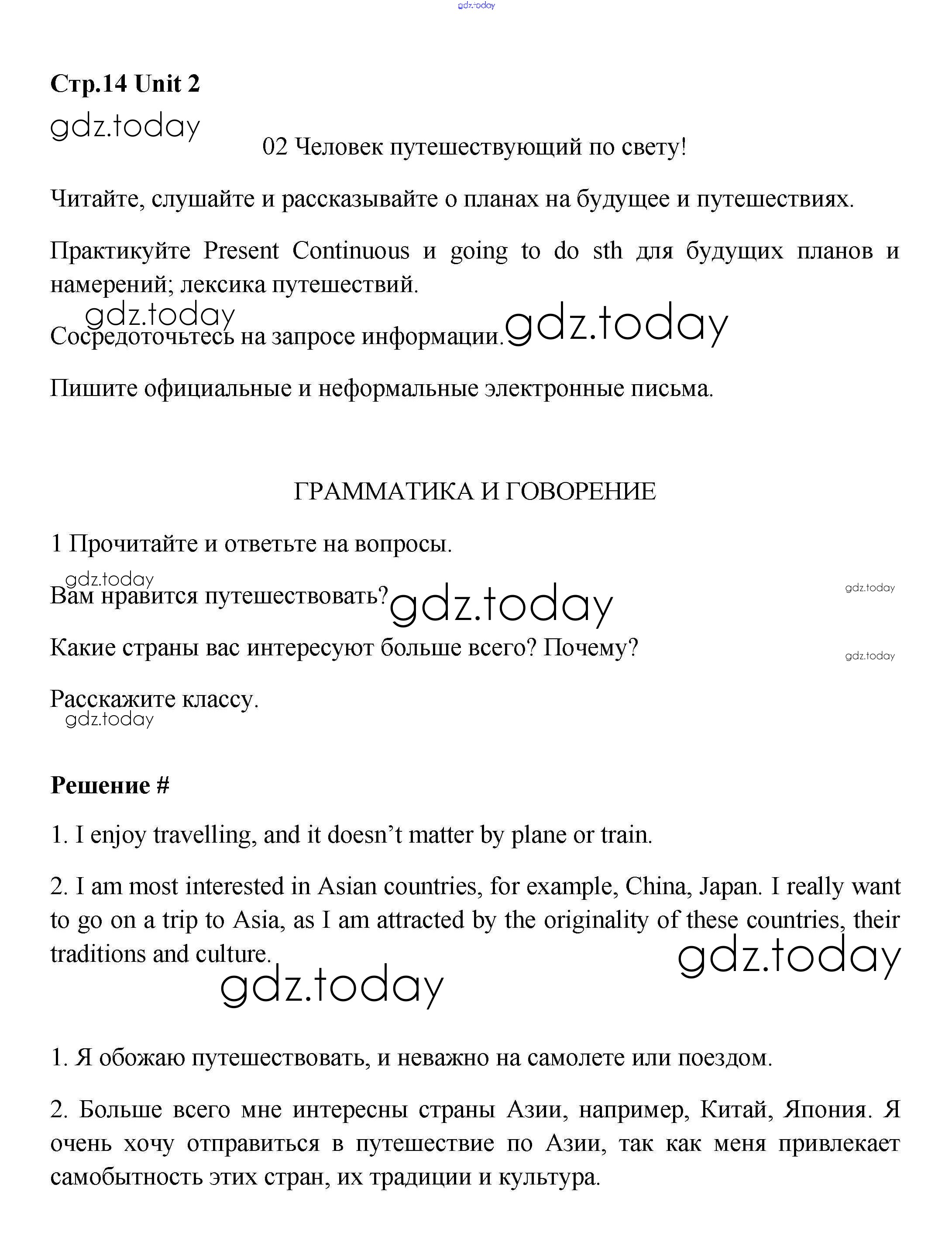 Ответы к Решение. Unit 2 Globetrotter! стр.14 Учебнику по Английскому языку для 8 класса Вербицкая, Маккинли Вентана-граф Forward 2016