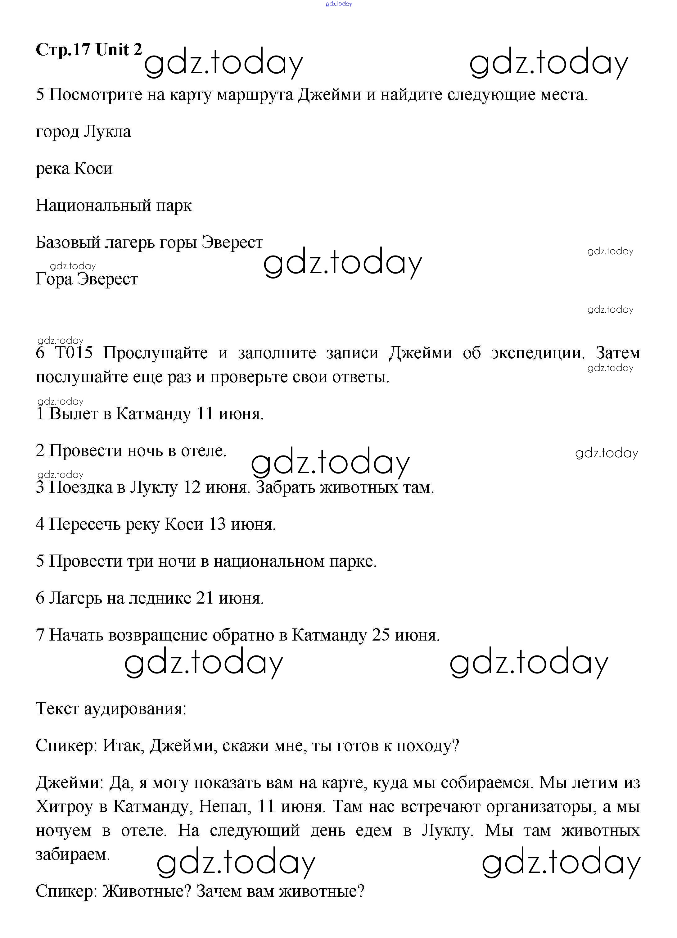 На страницах сайта gdz.today вы найдете учебный и вспомогательный материал, направленный на улучшения знаний школьной программы. ГДЗ - онлайн мир знаний Решение. Unit 2 Globetrotter! стр.17 Учебнику по Английскому языку для 8 класса Вербицкая, Маккинли Вентана-граф Forward 2016