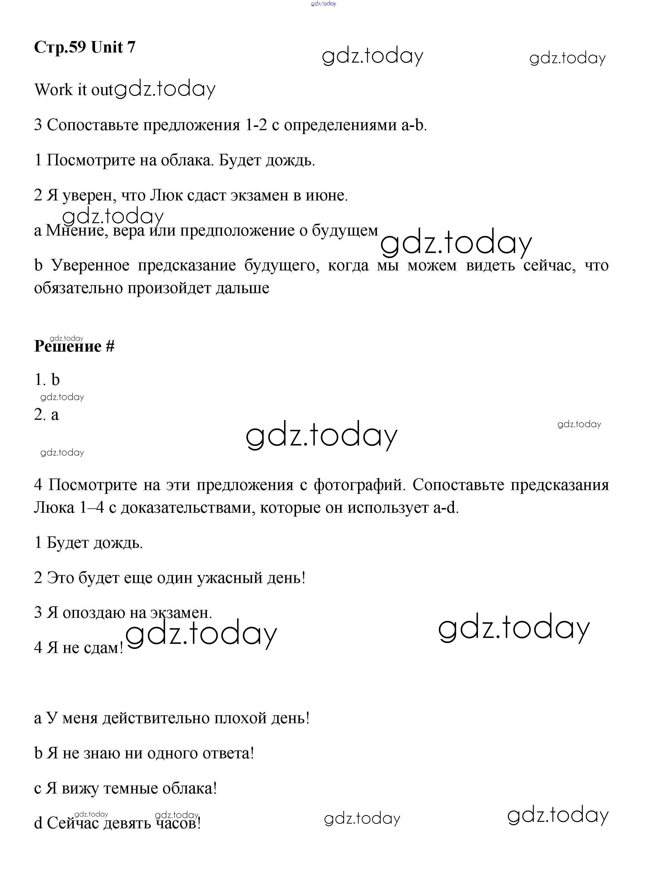 На страницах сайта gdz.today вы найдете учебный и вспомогательный материал, направленный на улучшения знаний школьной программы. ГДЗ - онлайн мир знаний Решение. Unit 7 Look to the future стр.59 Учебнику по Английскому языку для 8 класса Вербицкая, Маккинли Вентана-граф Forward 2016