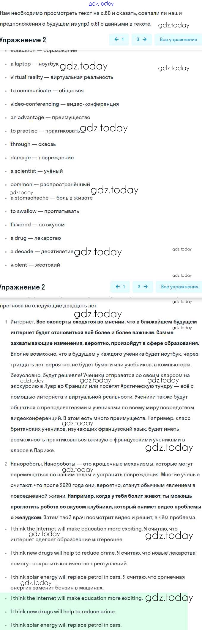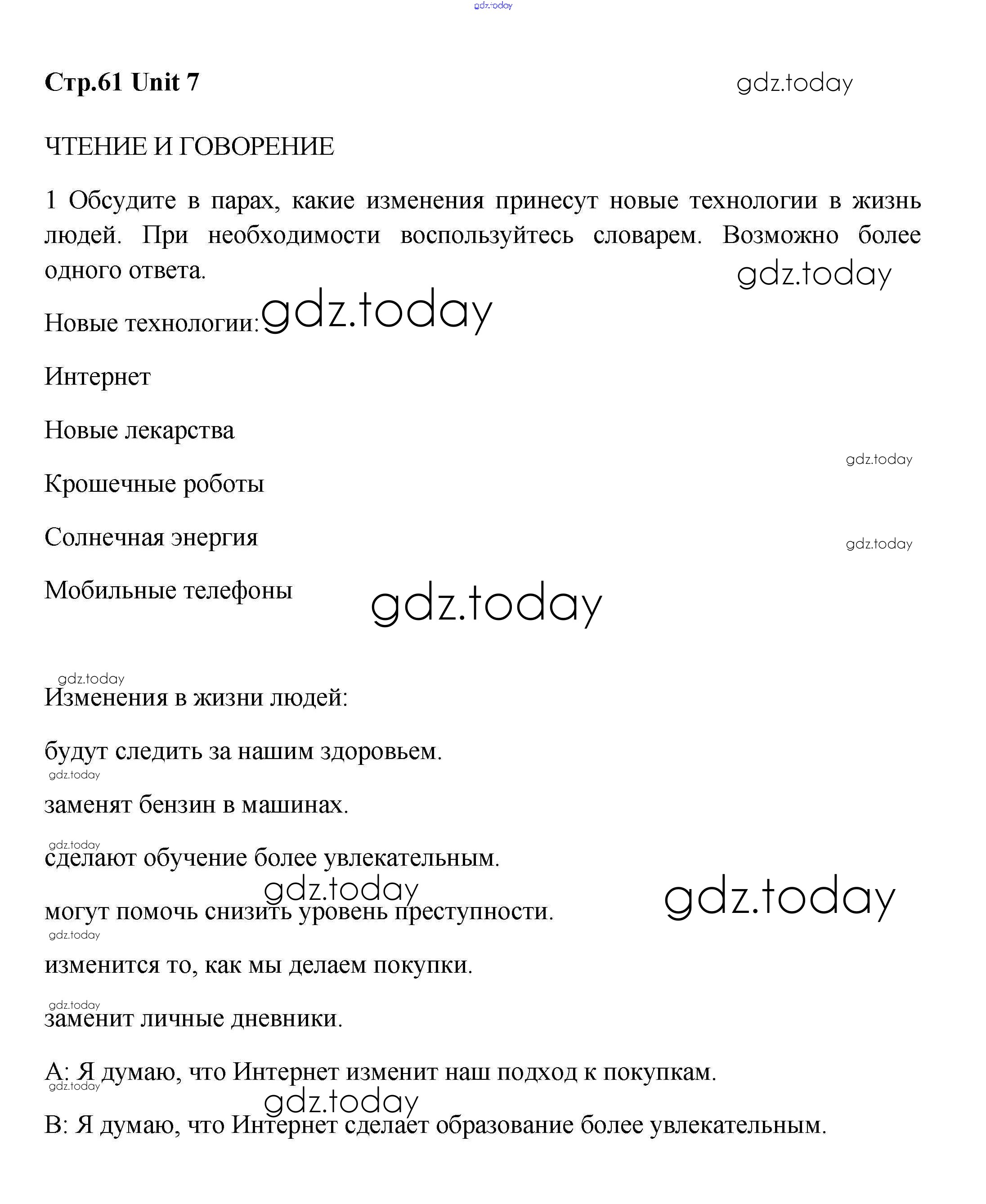 На страницах сайта gdz.today вы найдете учебный и вспомогательный материал, направленный на улучшения знаний школьной программы. ГДЗ - онлайн мир знаний Решение. Unit 7 Look to the future стр.61 Учебнику по Английскому языку для 8 класса Вербицкая, Маккинли Вентана-граф Forward 2016