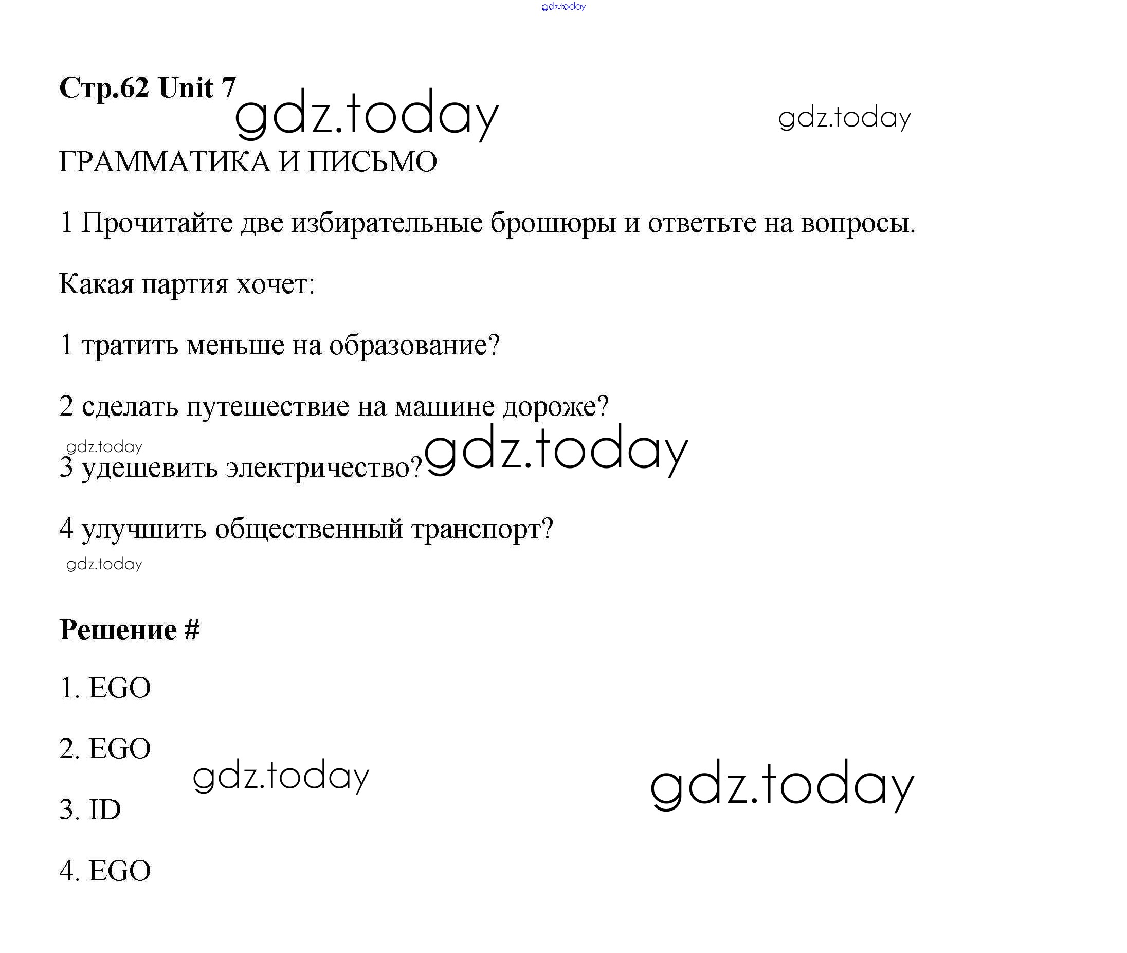 На страницах сайта gdz.today вы найдете учебный и вспомогательный материал, направленный на улучшения знаний школьной программы. ГДЗ - онлайн мир знаний Решение. Unit 7 Look to the future стр.62 Учебнику по Английскому языку для 8 класса Вербицкая, Маккинли Вентана-граф Forward 2016