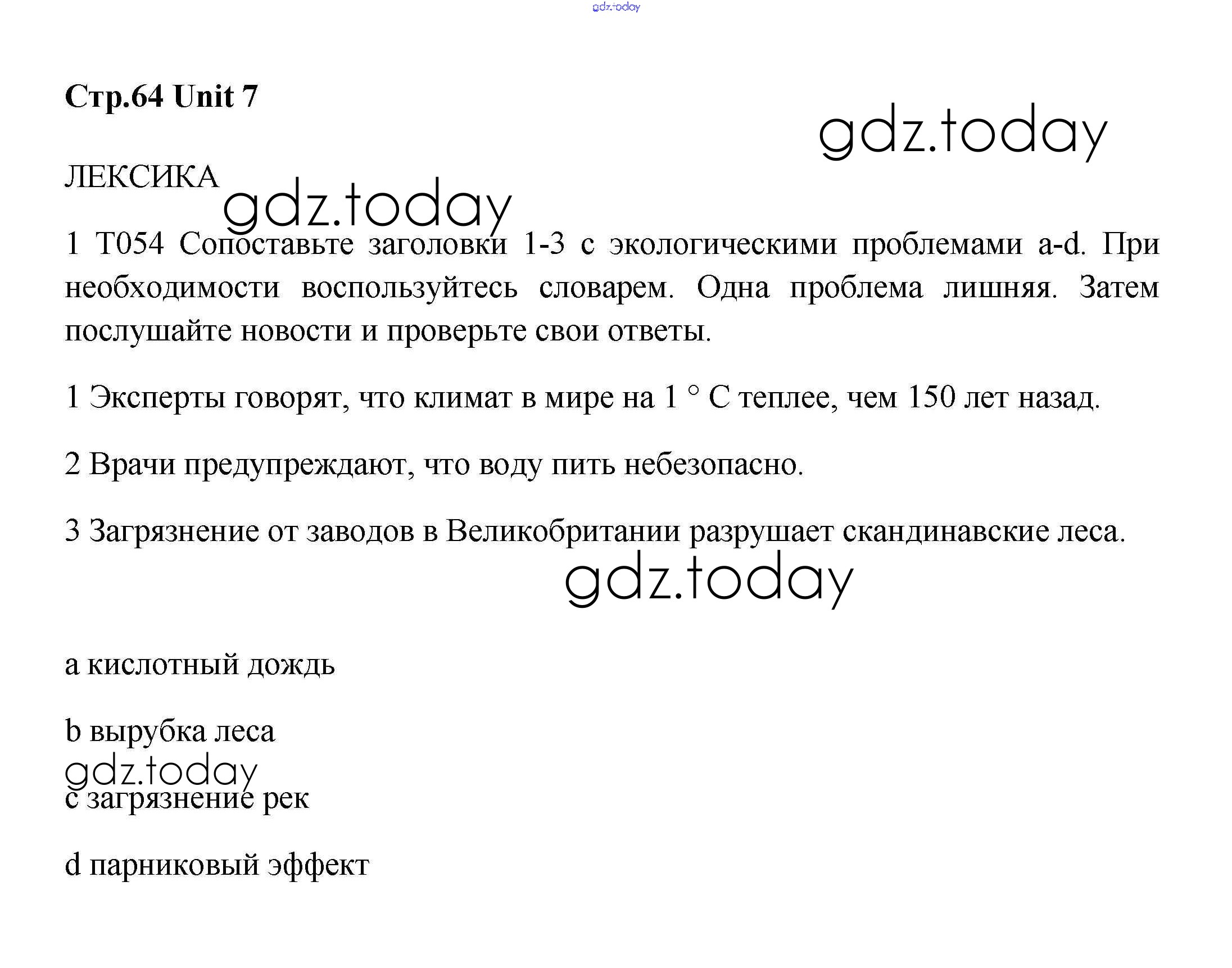 На страницах сайта gdz.today вы найдете учебный и вспомогательный материал, направленный на улучшения знаний школьной программы. ГДЗ - онлайн мир знаний Решение. Unit 7 Look to the future стр.64 Учебнику по Английскому языку для 8 класса Вербицкая, Маккинли Вентана-граф Forward 2016