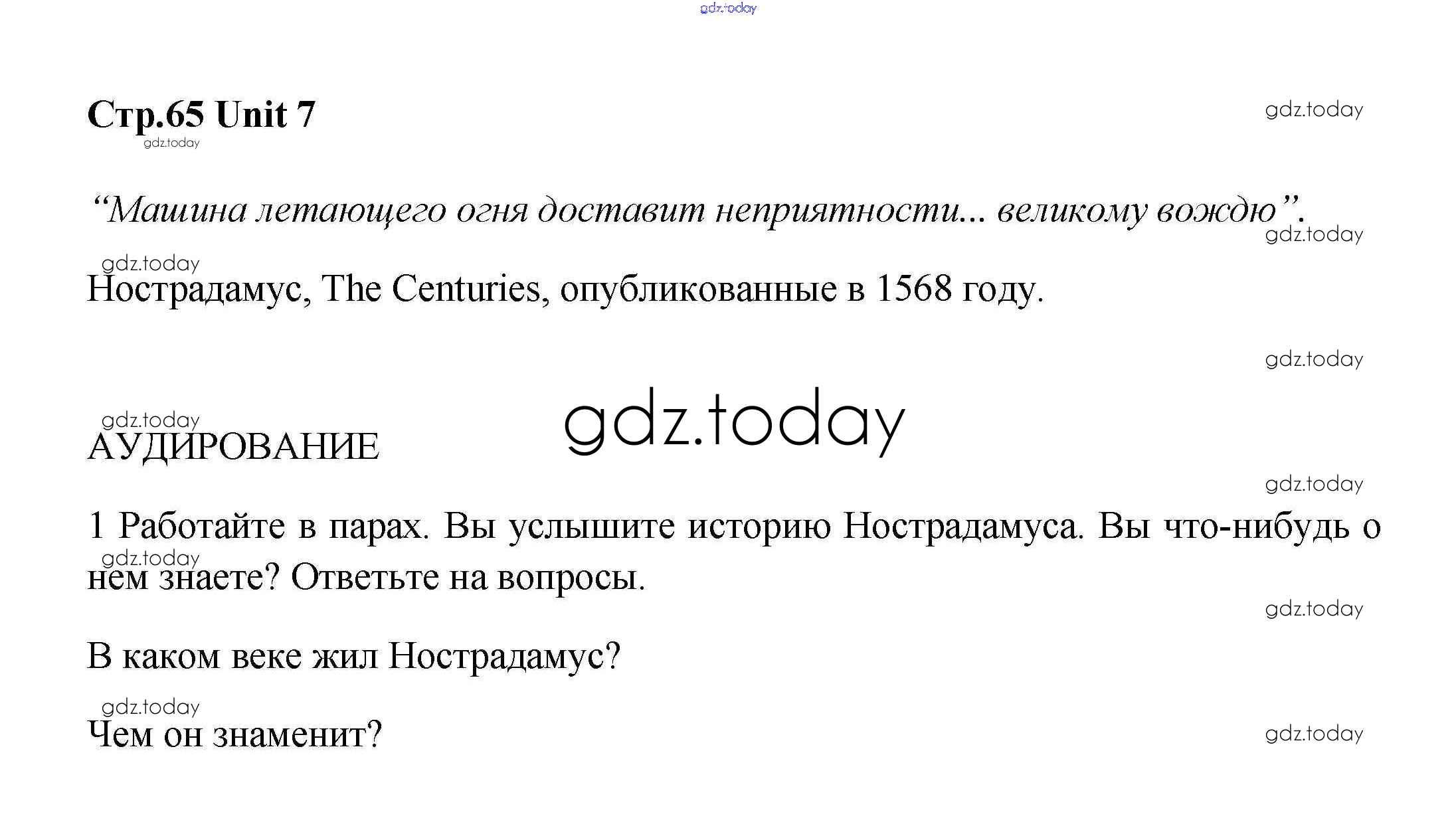 На страницах сайта gdz.today вы найдете учебный и вспомогательный материал, направленный на улучшения знаний школьной программы. ГДЗ - онлайн мир знаний Решение. Unit 7 Look to the future стр.65 Учебнику по Английскому языку для 8 класса Вербицкая, Маккинли Вентана-граф Forward 2016