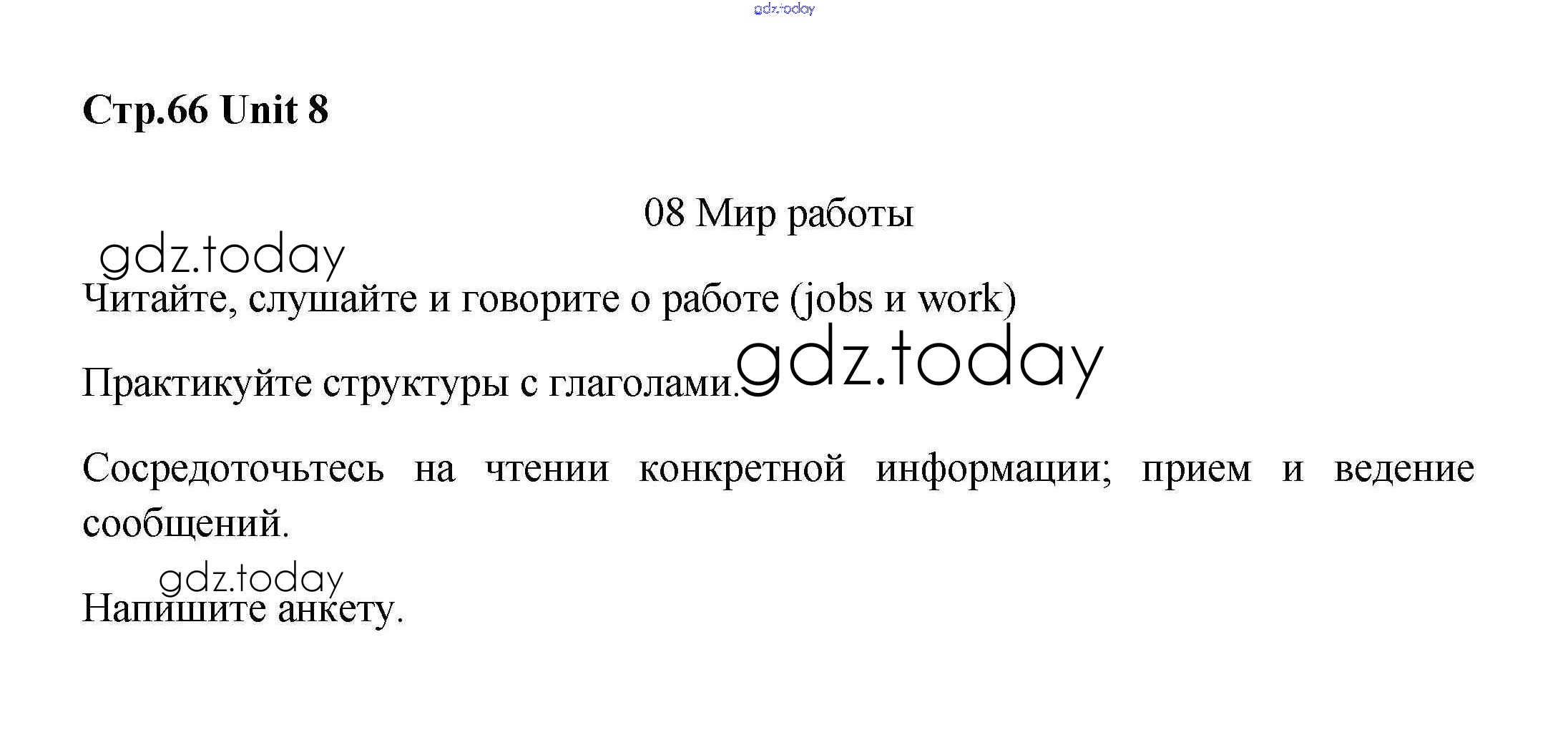 На страницах сайта gdz.today вы найдете учебный и вспомогательный материал, направленный на улучшения знаний школьной программы. ГДЗ - онлайн мир знаний Решение. Unit 8 The world of work стр.66 Учебнику по Английскому языку для 8 класса Вербицкая, Маккинли Вентана-граф Forward 2016