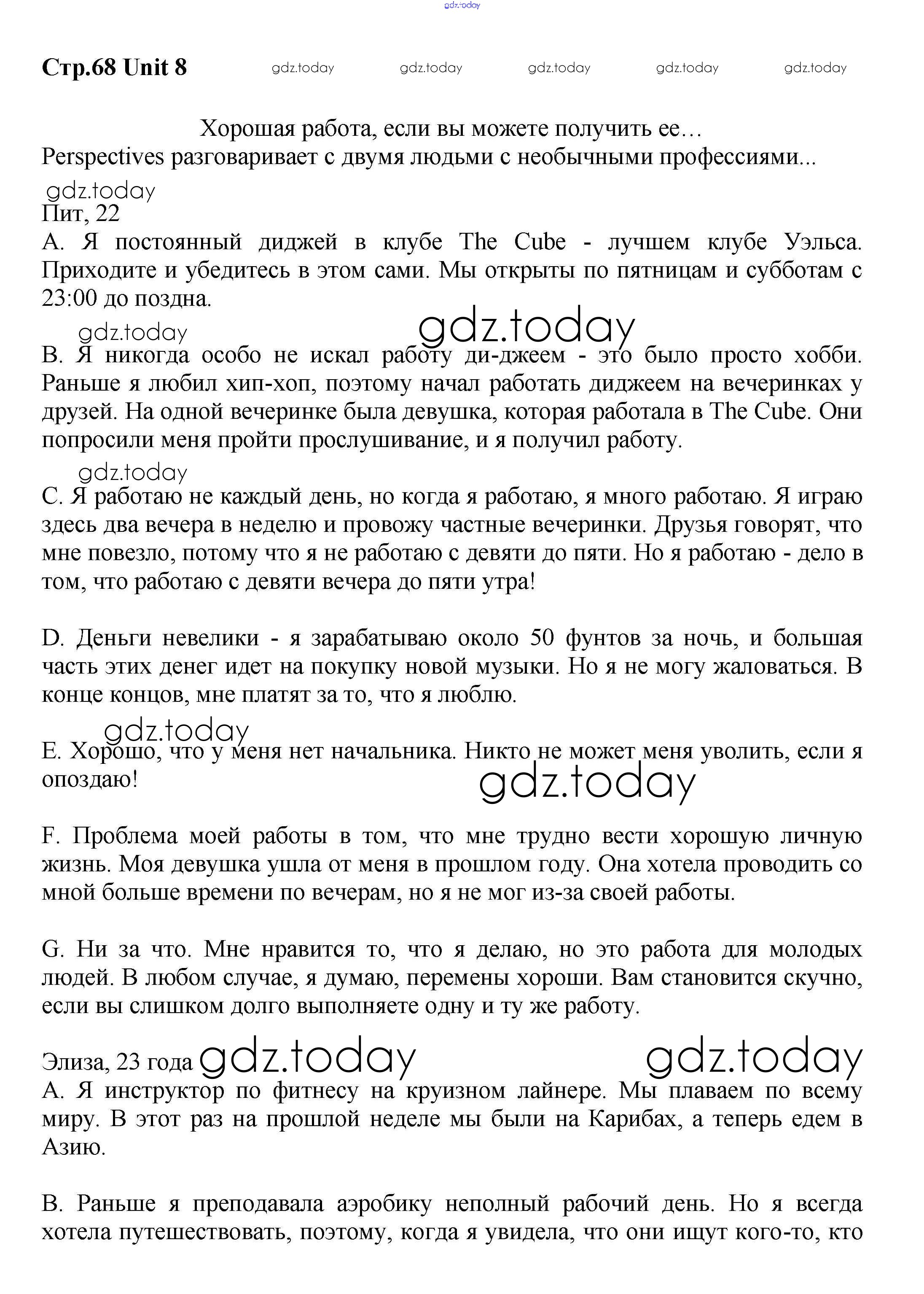 На страницах сайта gdz.today вы найдете учебный и вспомогательный материал, направленный на улучшения знаний школьной программы. ГДЗ - онлайн мир знаний Решение. Unit 8 The world of work стр.68 Учебнику по Английскому языку для 8 класса Вербицкая, Маккинли Вентана-граф Forward 2016