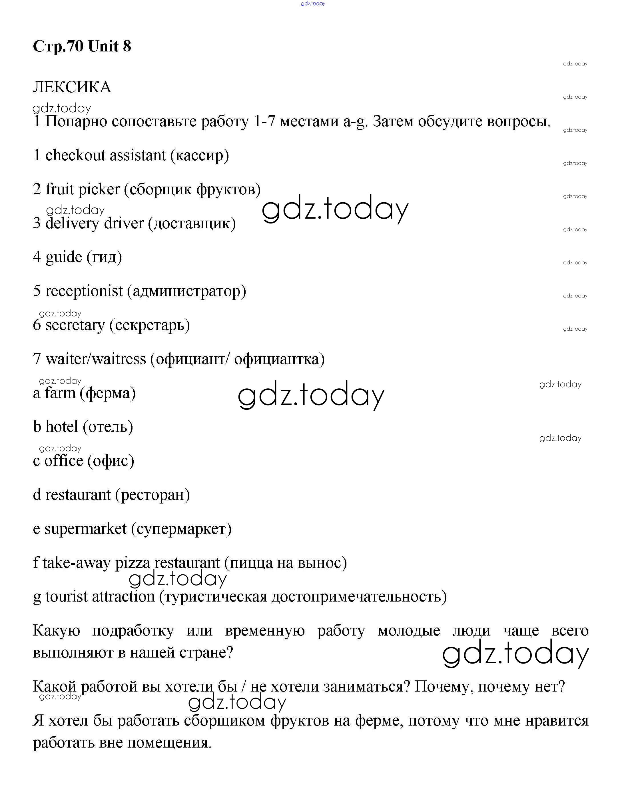 На страницах сайта gdz.today вы найдете учебный и вспомогательный материал, направленный на улучшения знаний школьной программы. ГДЗ - онлайн мир знаний Решение. Unit 8 The world of work стр.70 Учебнику по Английскому языку для 8 класса Вербицкая, Маккинли Вентана-граф Forward 2016
