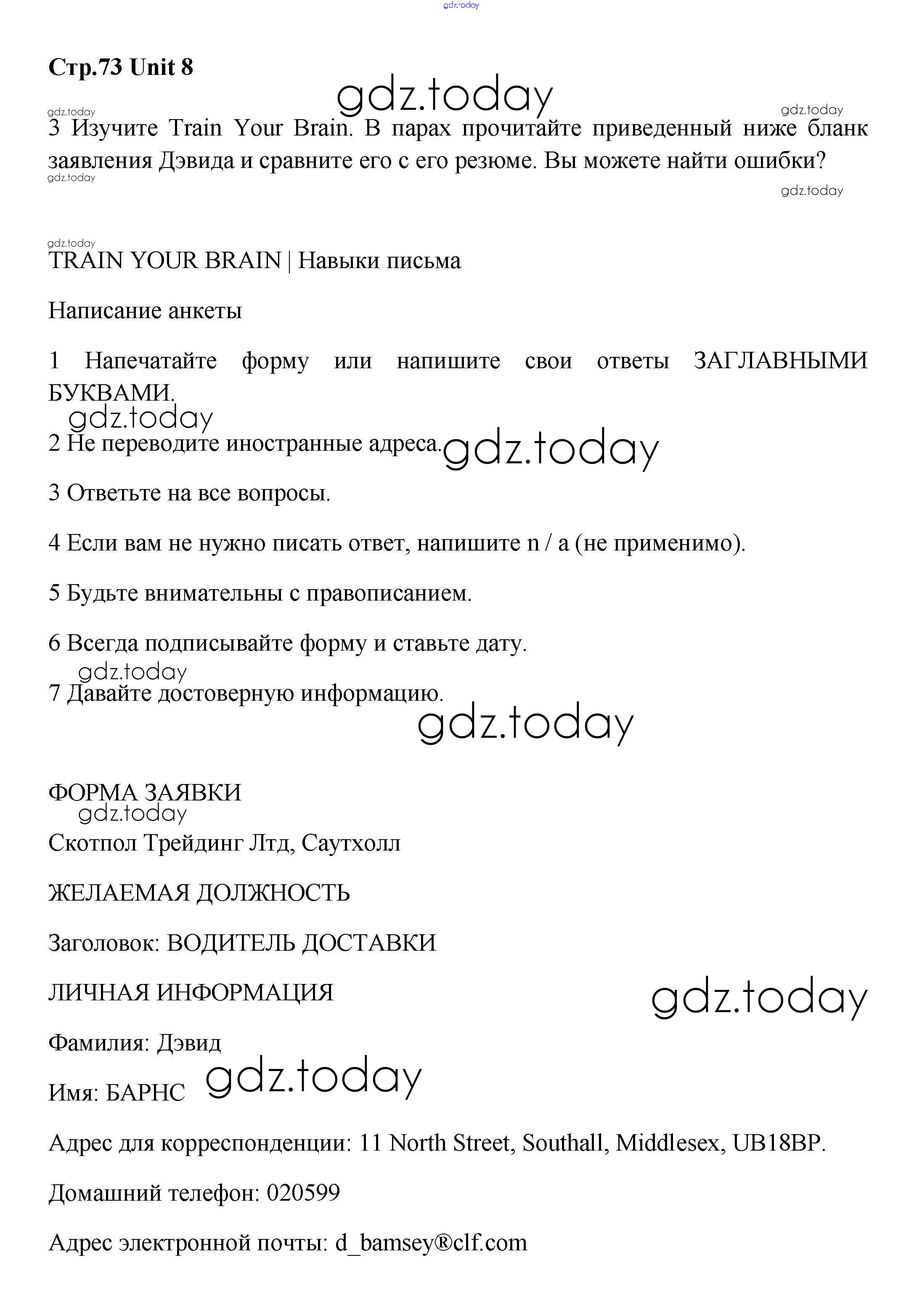 На страницах сайта gdz.today вы найдете учебный и вспомогательный материал, направленный на улучшения знаний школьной программы. ГДЗ - онлайн мир знаний Решение. Unit 8 The world of work стр.73 Учебнику по Английскому языку для 8 класса Вербицкая, Маккинли Вентана-граф Forward 2016