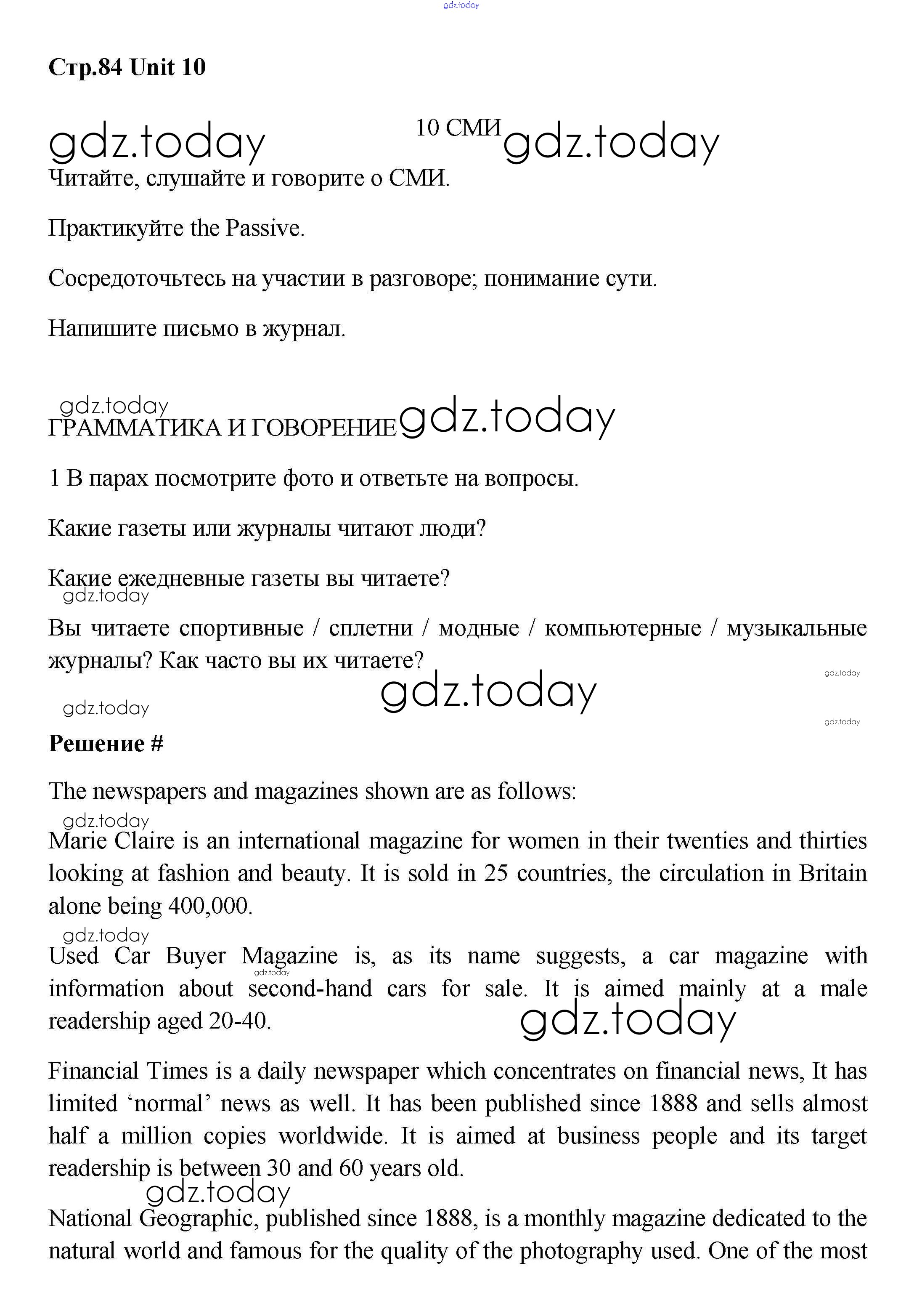 На страницах сайта gdz.today вы найдете учебный и вспомогательный материал, направленный на улучшения знаний школьной программы. ГДЗ - онлайн мир знаний Решение. Unit 10 The media стр.84 Учебнику по Английскому языку для 8 класса Вербицкая, Маккинли Вентана-граф Forward 2016
