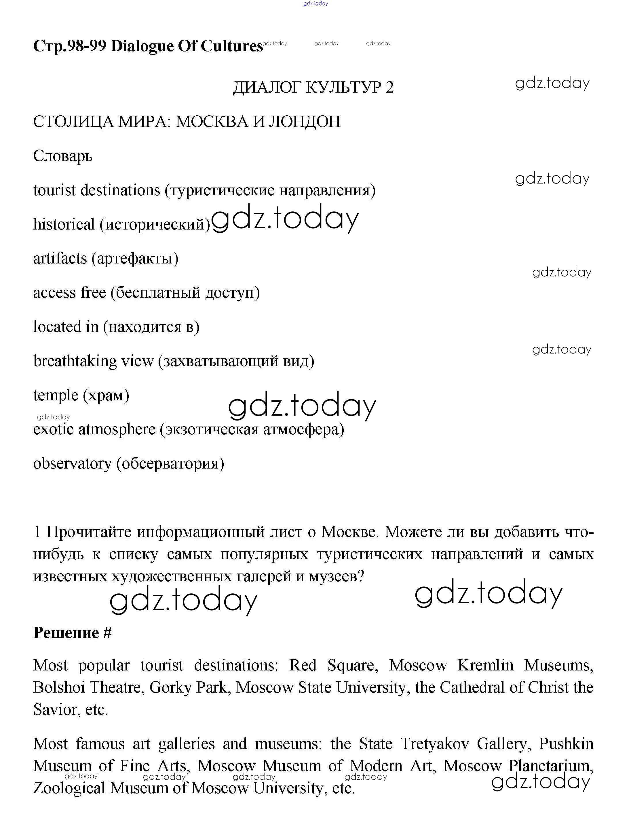 На страницах сайта gdz.today вы найдете учебный и вспомогательный материал, направленный на улучшения знаний школьной программы. ГДЗ - онлайн мир знаний Решение. Dialogue Of Cultures стр.98-99 Учебнику по Английскому языку для 8 класса Вербицкая, Маккинли Вентана-граф Forward 2016