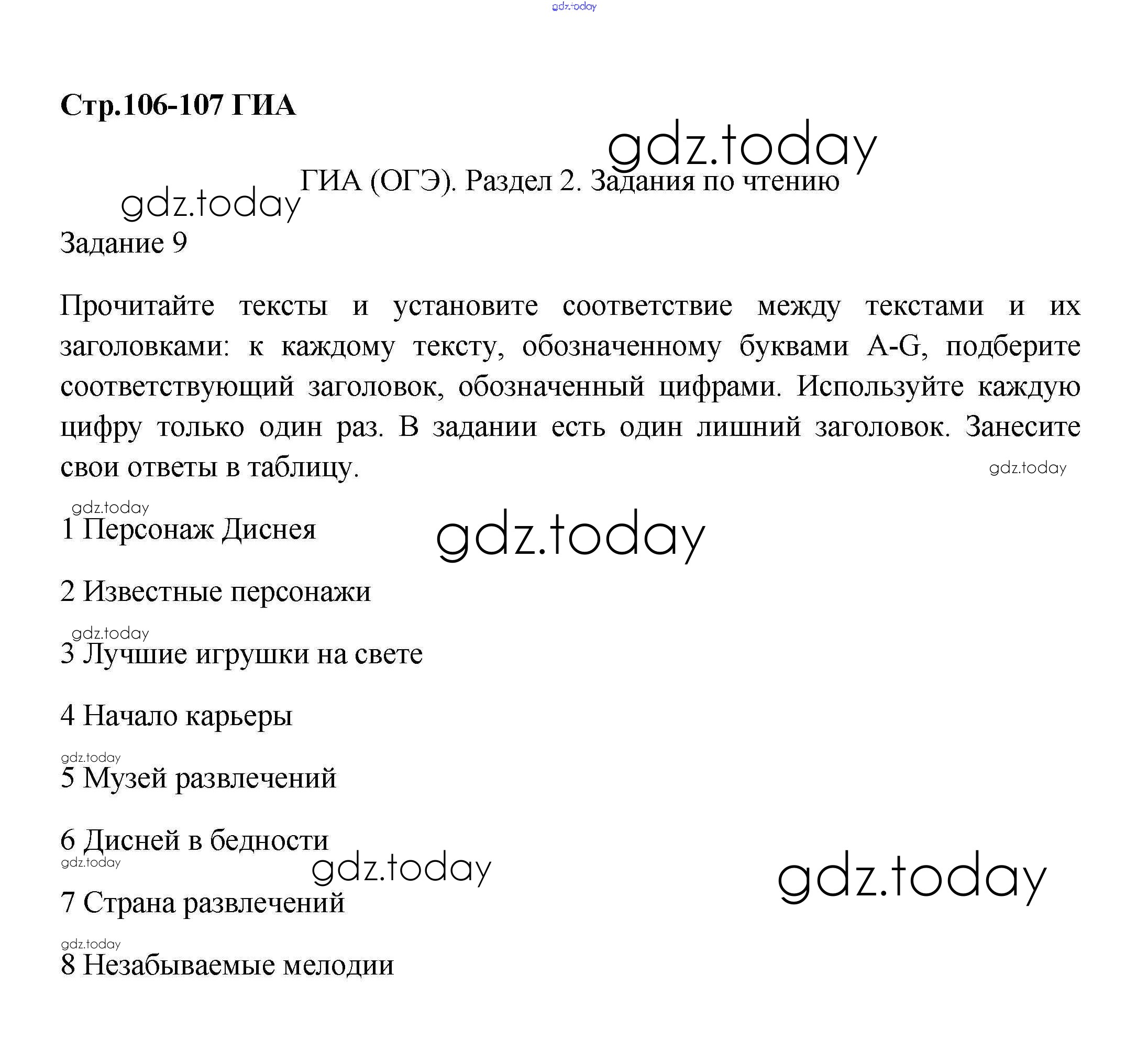 На страницах сайта gdz.today вы найдете учебный и вспомогательный материал, направленный на улучшения знаний школьной программы. ГДЗ - онлайн мир знаний Решение. ГИА стр.106-107 Учебнику по Английскому языку для 8 класса Вербицкая, Маккинли Вентана-граф Forward 2016