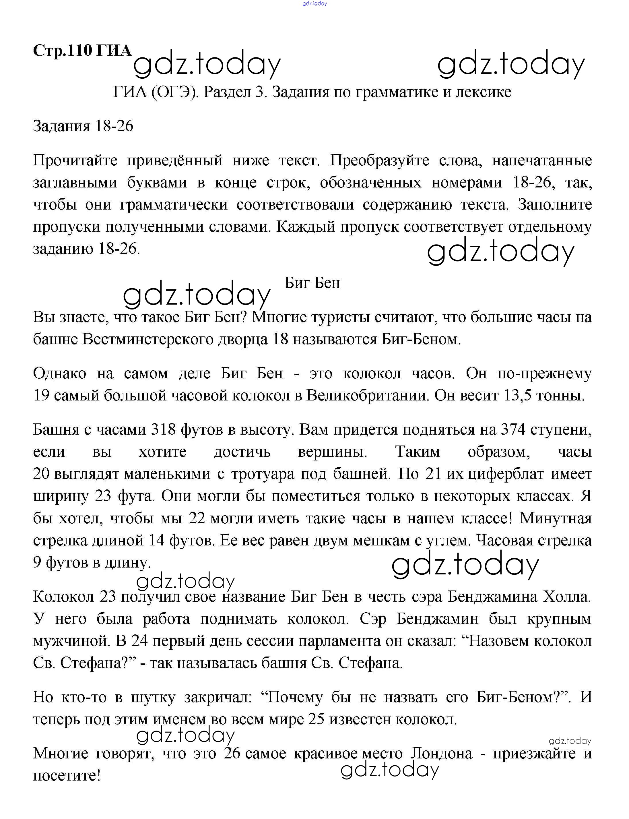 На страницах сайта gdz.today вы найдете учебный и вспомогательный материал, направленный на улучшения знаний школьной программы. ГДЗ - онлайн мир знаний Решение. ГИА стр.110 Учебнику по Английскому языку для 8 класса Вербицкая, Маккинли Вентана-граф Forward 2016