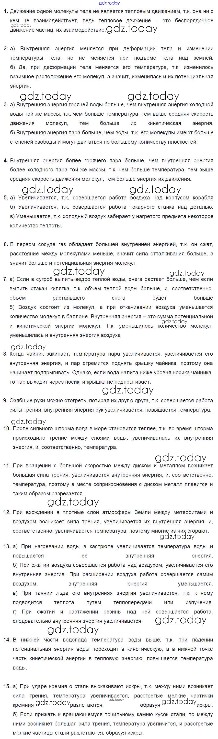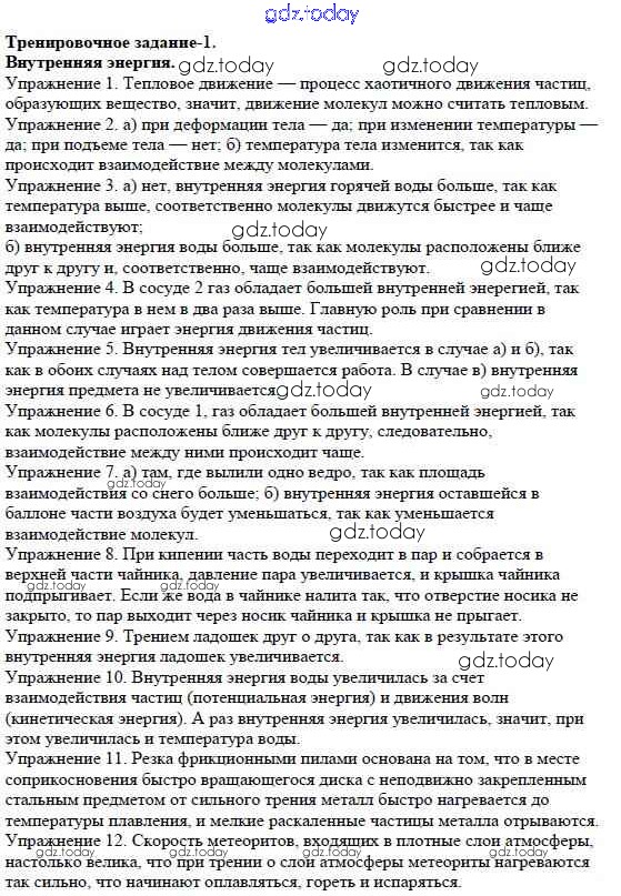 На страницах сайта gdz.today вы найдете учебный и вспомогательный материал, направленный на улучшения знаний школьной программы. ГДЗ - онлайн мир знаний Решение к тренировочным заданиям 1. Внутренняя энергия Дидактическим материалам по Физике для 8 класса Марон Дрофа Вертикаль 2016