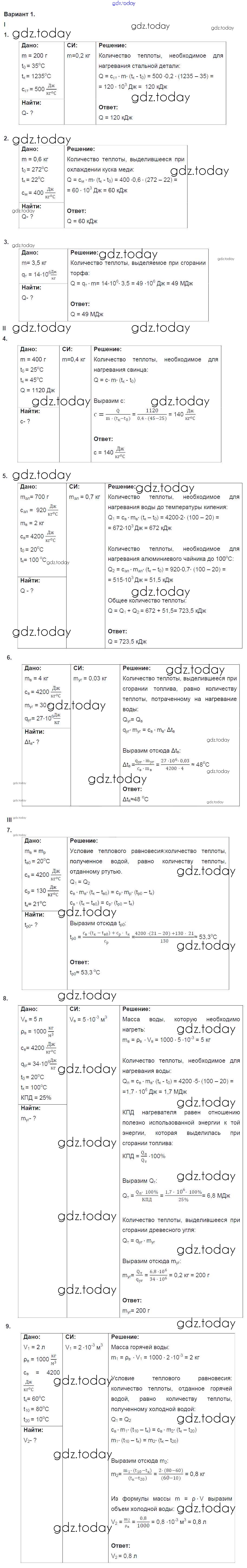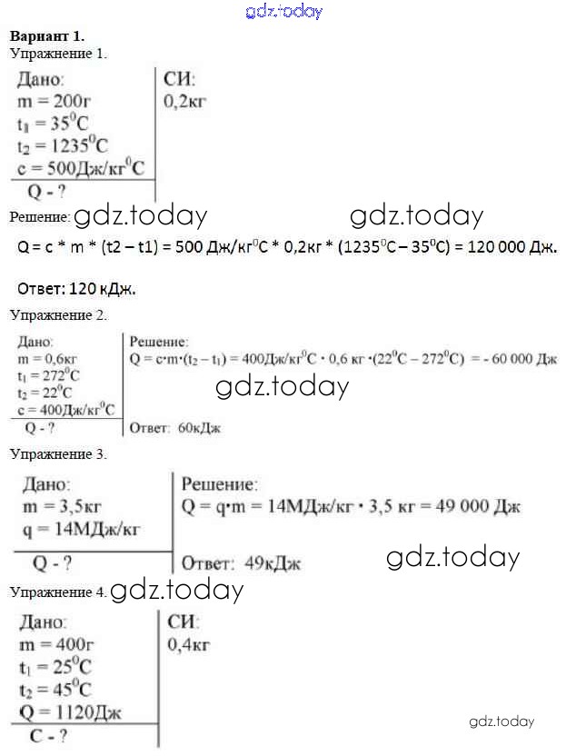На страницах сайта gdz.today вы найдете учебный и вспомогательный материал, направленный на улучшения знаний школьной программы. ГДЗ - онлайн мир знаний КР №1. Расчет количества теплоты. Варианты Решение к контрольным работам 1 Дидактическим материалам по Физике для 8 класса Марон Дрофа Вертикаль 2016