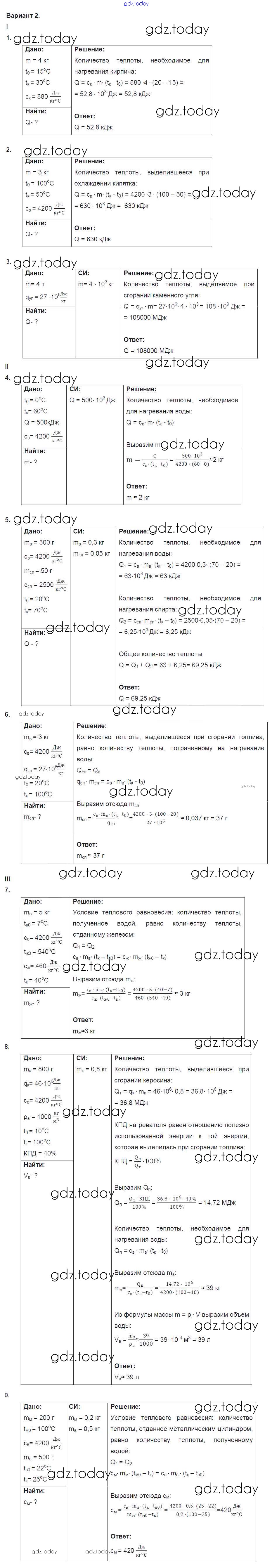 На страницах сайта gdz.today вы найдете учебный и вспомогательный материал, направленный на улучшения знаний школьной программы. ГДЗ - онлайн мир знаний КР №1. Расчет количества теплоты. Варианты Решение к контрольным работам 2 Дидактическим материалам по Физике для 8 класса Марон Дрофа Вертикаль 2016