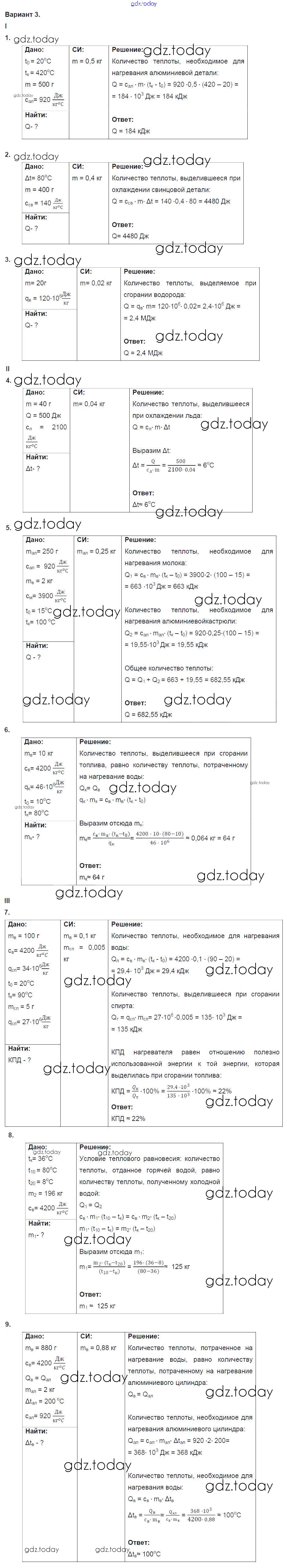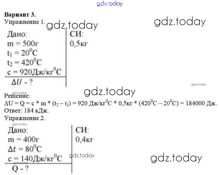 На страницах сайта gdz.today вы найдете учебный и вспомогательный материал, направленный на улучшения знаний школьной программы. ГДЗ - онлайн мир знаний КР №1. Расчет количества теплоты. Варианты Решение к контрольным работам 3 Дидактическим материалам по Физике для 8 класса Марон Дрофа Вертикаль 2016