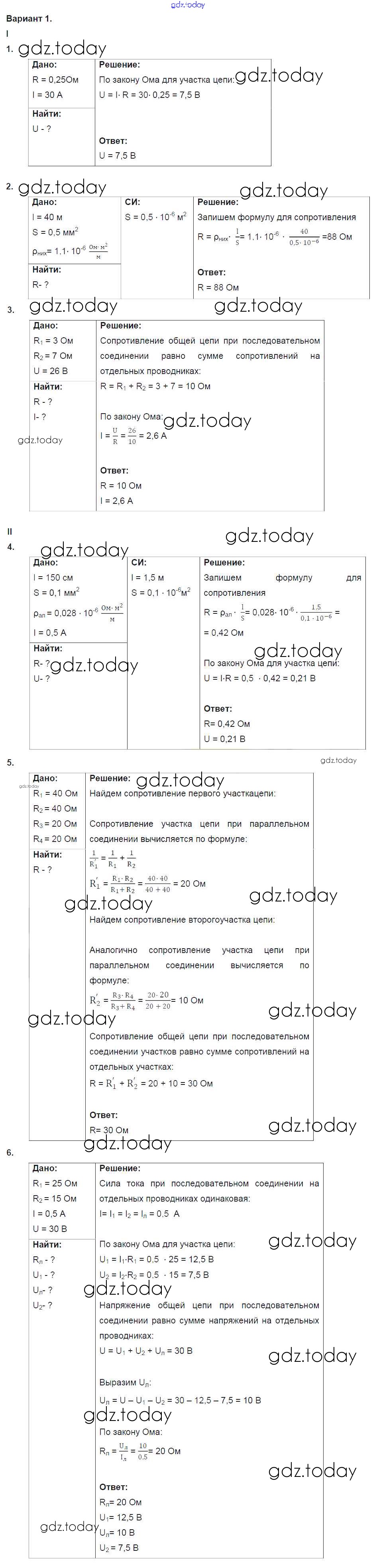 Ответы к КР №3. Электрический ток. Варианты Решение к контрольным работам 1 Дидактическим материалам по Физике для 8 класса Марон Дрофа Вертикаль 2016