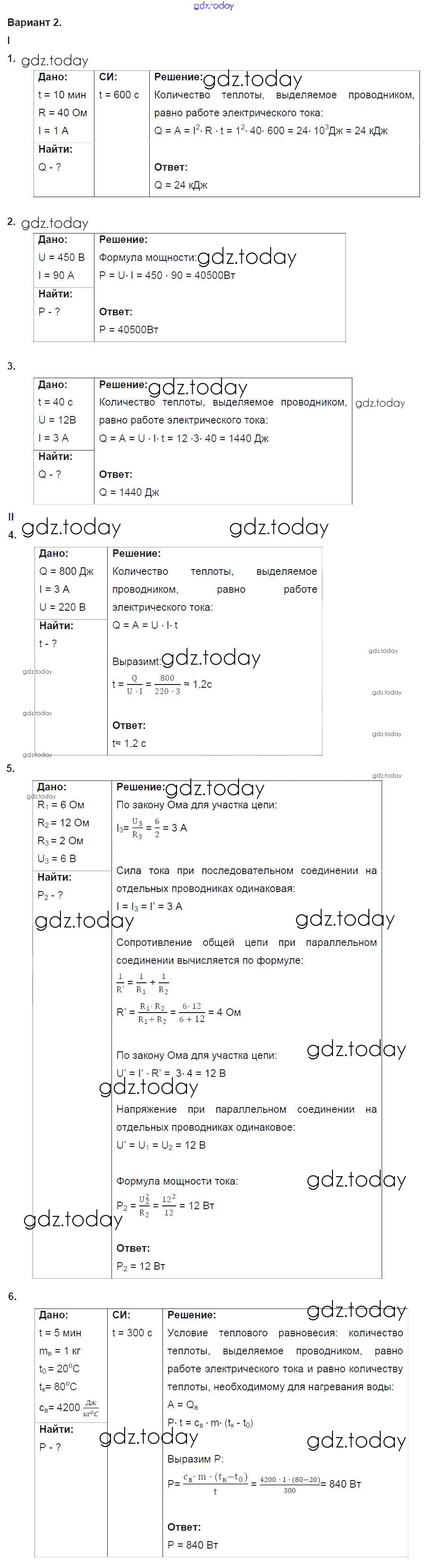 На страницах сайта gdz.today вы найдете учебный и вспомогательный материал, направленный на улучшения знаний школьной программы. ГДЗ - онлайн мир знаний КР №4. Работа и мощность тока. Варианты Решение к контрольным работам 2 Дидактическим материалам по Физике для 8 класса Марон Дрофа Вертикаль 2016
