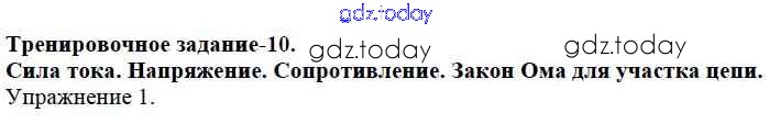 На страницах сайта gdz.today вы найдете учебный и вспомогательный материал, направленный на улучшения знаний школьной программы. ГДЗ - онлайн мир знаний Решение к тренировочным заданиям 10. Сила тока. Напряжение. Сопротивление. Закон Ома для участка цепи Дидактическим материалам по Физике для 8 класса Марон Дрофа Вертикаль 2016