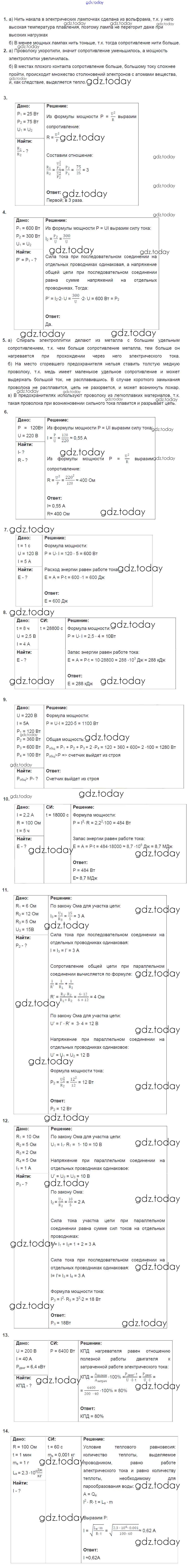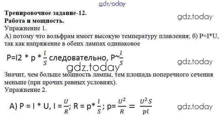 На страницах сайта gdz.today вы найдете учебный и вспомогательный материал, направленный на улучшения знаний школьной программы. ГДЗ - онлайн мир знаний Решение к тренировочным заданиям 12. Работа и мощность тока Дидактическим материалам по Физике для 8 класса Марон Дрофа Вертикаль 2016