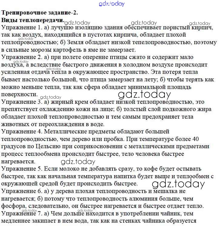 На страницах сайта gdz.today вы найдете учебный и вспомогательный материал, направленный на улучшения знаний школьной программы. ГДЗ - онлайн мир знаний Решение к тренировочным заданиям 2. Виды теплопередачи Дидактическим материалам по Физике для 8 класса Марон Дрофа Вертикаль 2016