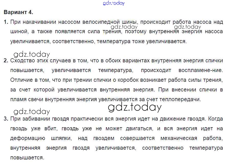 На страницах сайта gdz.today вы найдете учебный и вспомогательный материал, направленный на улучшения знаний школьной программы. ГДЗ - онлайн мир знаний СР №1. Внутренняя энергия. Варианты Решение к самостоятельным работам 4 Дидактическим материалам по Физике для 8 класса Марон Дрофа Вертикаль 2016