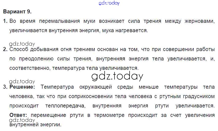На страницах сайта gdz.today вы найдете учебный и вспомогательный материал, направленный на улучшения знаний школьной программы. ГДЗ - онлайн мир знаний СР №1. Внутренняя энергия. Варианты Решение к самостоятельным работам 9 Дидактическим материалам по Физике для 8 класса Марон Дрофа Вертикаль 2016