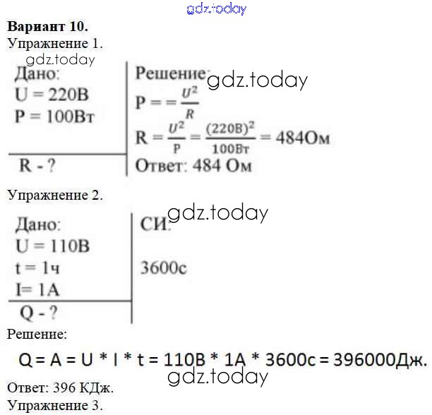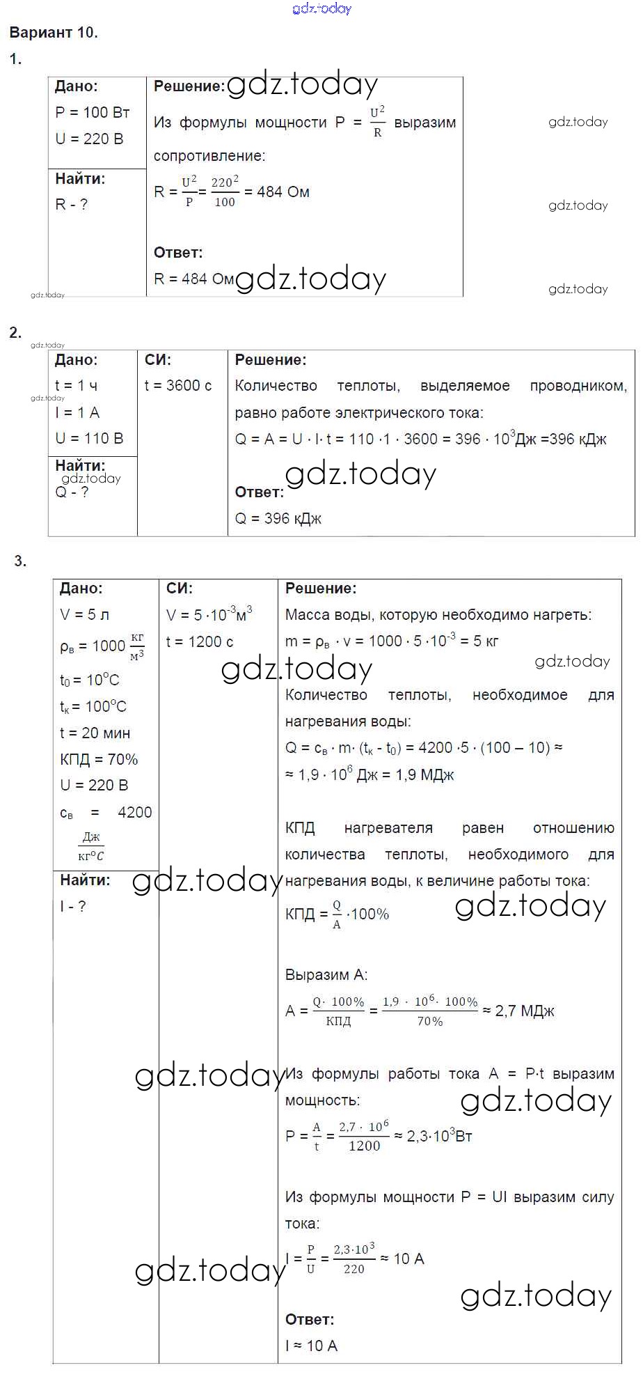 Ответы к СР №10. Работа и мощность тока. Варианты Решение к самостоятельным работам 10 Дидактическим материалам по Физике для 8 класса Марон Дрофа Вертикаль 2016