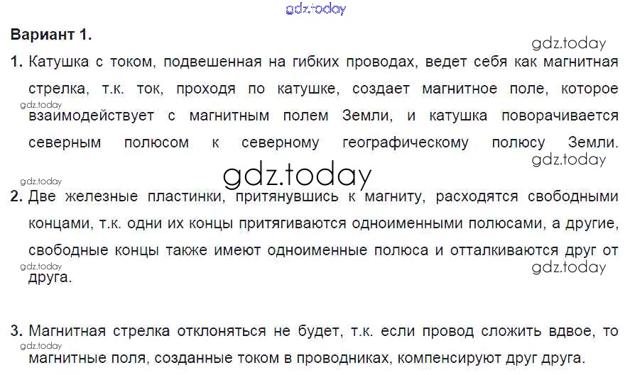 Ответы к СР №11. Электромагнитные явления. Варианты Решение к самостоятельным работам 1 Дидактическим материалам по Физике для 8 класса Марон Дрофа Вертикаль 2016