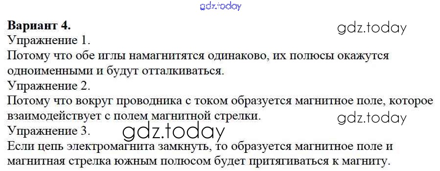На страницах сайта gdz.today вы найдете учебный и вспомогательный материал, направленный на улучшения знаний школьной программы. ГДЗ - онлайн мир знаний СР №11. Электромагнитные явления. Варианты Решение к самостоятельным работам 4 Дидактическим материалам по Физике для 8 класса Марон Дрофа Вертикаль 2016