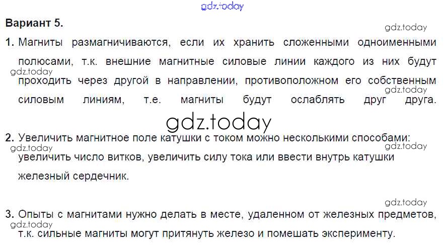 На страницах сайта gdz.today вы найдете учебный и вспомогательный материал, направленный на улучшения знаний школьной программы. ГДЗ - онлайн мир знаний СР №11. Электромагнитные явления. Варианты Решение к самостоятельным работам 5 Дидактическим материалам по Физике для 8 класса Марон Дрофа Вертикаль 2016