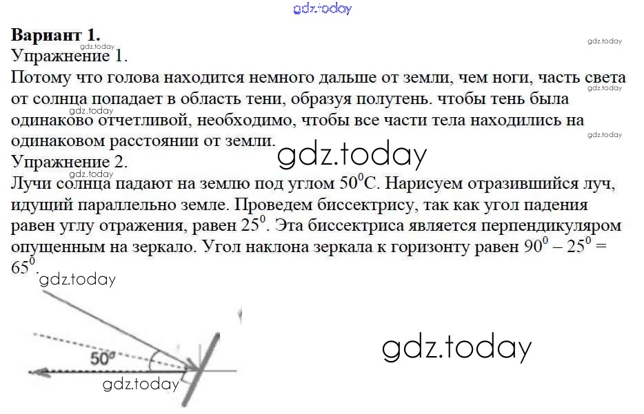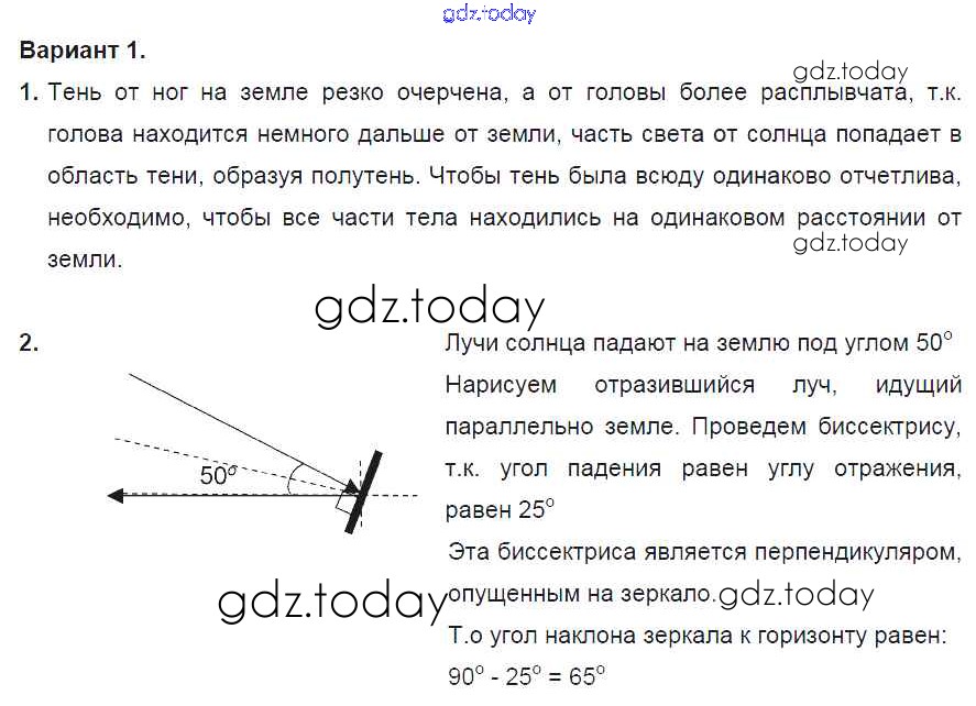 Ответы к СР №12. Отражение света. Плоское зеркало. Варианты Решение к самостоятельным работам 1 Дидактическим материалам по Физике для 8 класса Марон Дрофа Вертикаль 2016