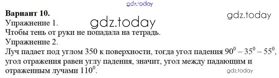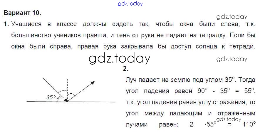 Ответы к СР №12. Отражение света. Плоское зеркало. Варианты Решение к самостоятельным работам 10 Дидактическим материалам по Физике для 8 класса Марон Дрофа Вертикаль 2016