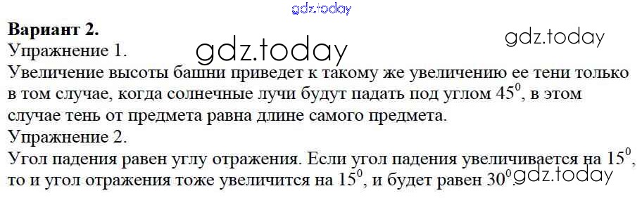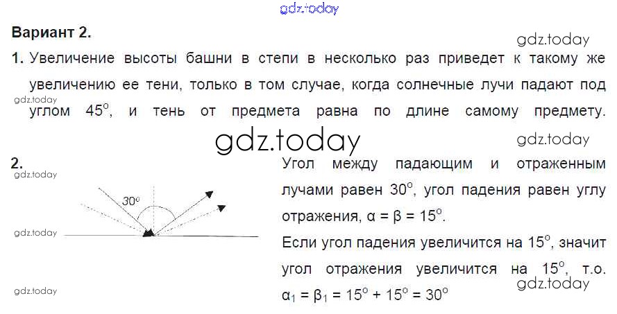 Ответы к СР №12. Отражение света. Плоское зеркало. Варианты Решение к самостоятельным работам 2 Дидактическим материалам по Физике для 8 класса Марон Дрофа Вертикаль 2016
