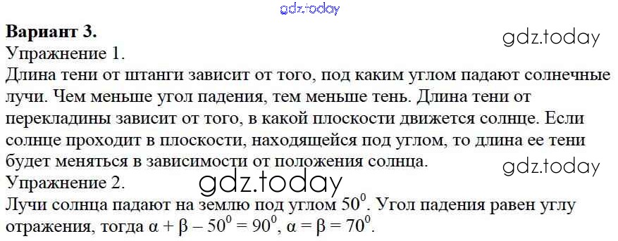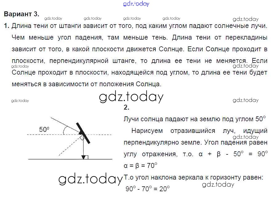 Ответы к СР №12. Отражение света. Плоское зеркало. Варианты Решение к самостоятельным работам 3 Дидактическим материалам по Физике для 8 класса Марон Дрофа Вертикаль 2016