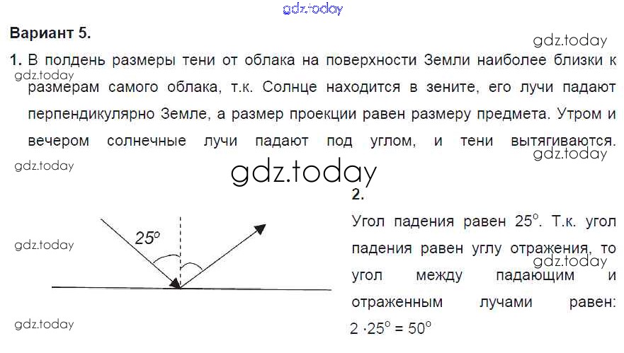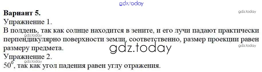 Ответы к СР №12. Отражение света. Плоское зеркало. Варианты Решение к самостоятельным работам 5 Дидактическим материалам по Физике для 8 класса Марон Дрофа Вертикаль 2016
