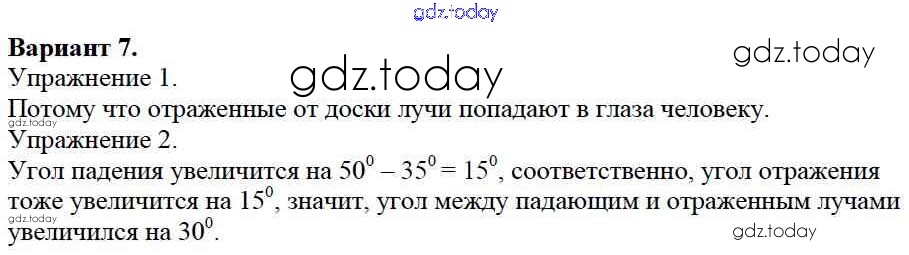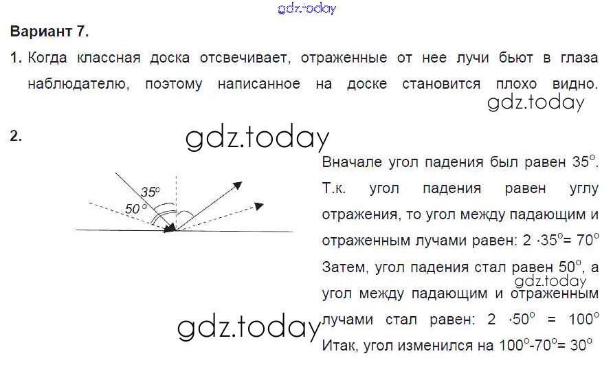 Ответы к СР №12. Отражение света. Плоское зеркало. Варианты Решение к самостоятельным работам 7 Дидактическим материалам по Физике для 8 класса Марон Дрофа Вертикаль 2016