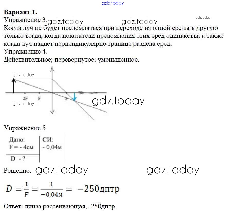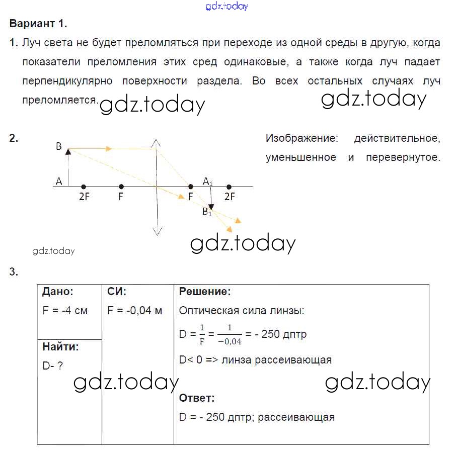 Ответы к СР №13. Преломление света. Линзы. Варианты Решение к самостоятельным работам 1 Дидактическим материалам по Физике для 8 класса Марон Дрофа Вертикаль 2016