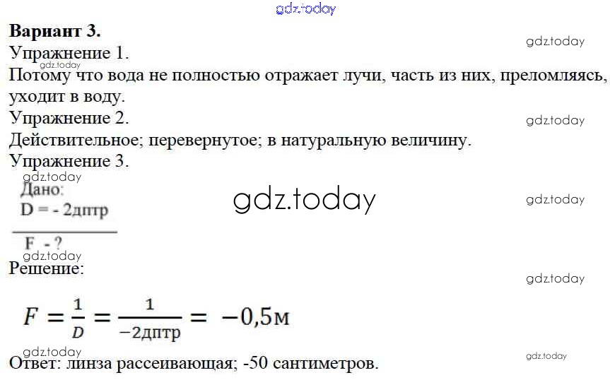 Ответы к СР №13. Преломление света. Линзы. Варианты Решение к самостоятельным работам 3 Дидактическим материалам по Физике для 8 класса Марон Дрофа Вертикаль 2016