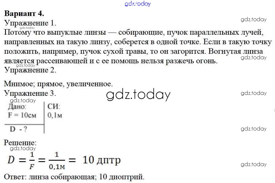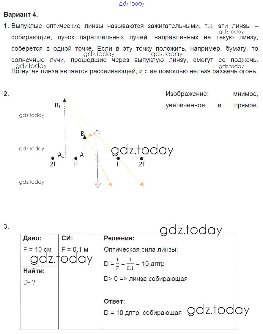 На страницах сайта gdz.today вы найдете учебный и вспомогательный материал, направленный на улучшения знаний школьной программы. ГДЗ - онлайн мир знаний СР №13. Преломление света. Линзы. Варианты Решение к самостоятельным работам 4 Дидактическим материалам по Физике для 8 класса Марон Дрофа Вертикаль 2016
