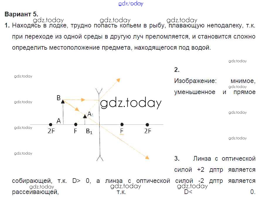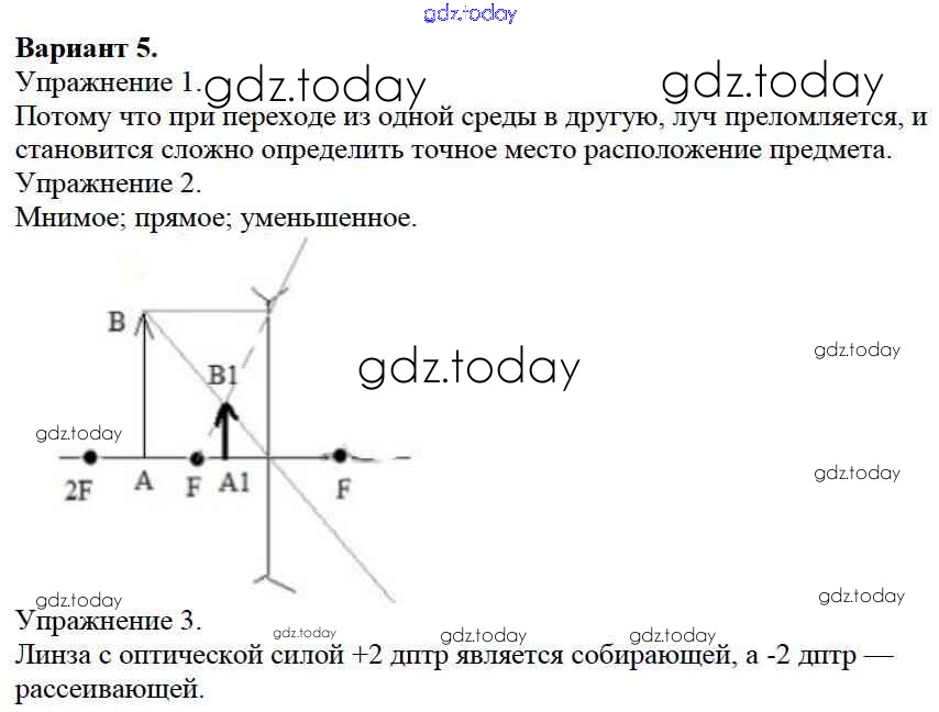 Ответы к СР №13. Преломление света. Линзы. Варианты Решение к самостоятельным работам 5 Дидактическим материалам по Физике для 8 класса Марон Дрофа Вертикаль 2016