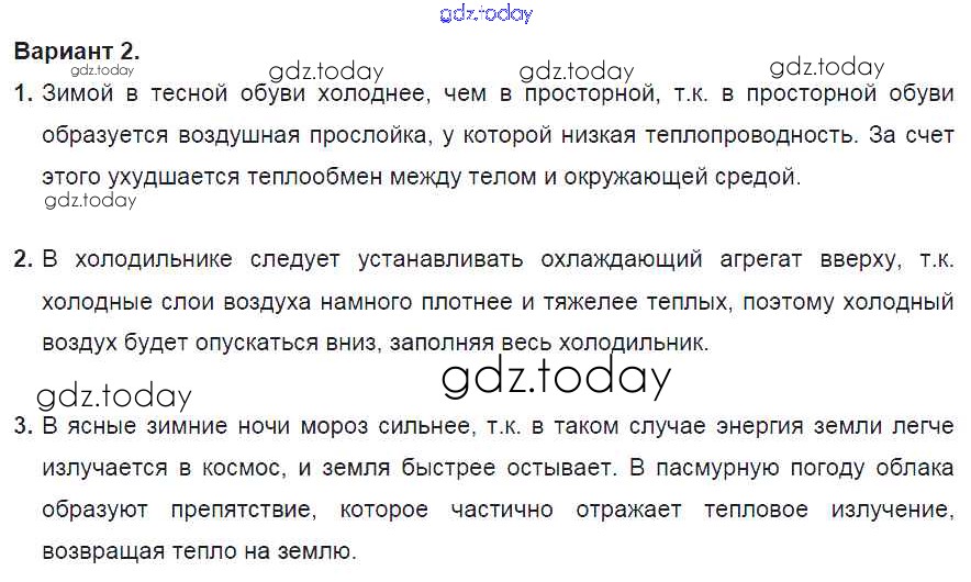 На страницах сайта gdz.today вы найдете учебный и вспомогательный материал, направленный на улучшения знаний школьной программы. ГДЗ - онлайн мир знаний СР №2. Виды теплопередачи. Варианты Решение к самостоятельным работам 2 Дидактическим материалам по Физике для 8 класса Марон Дрофа Вертикаль 2016