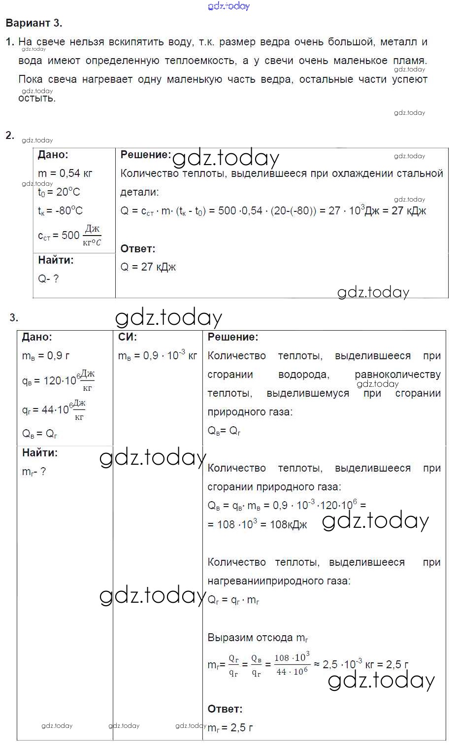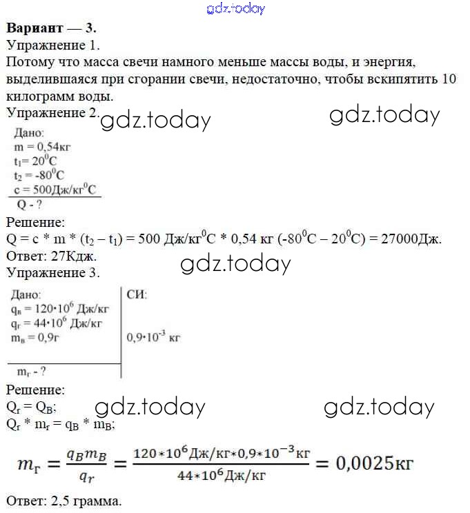 Ответы к СР №3. Количество теплоты. Энергия топлива. Варианты Решение к самостоятельным работам 3 Дидактическим материалам по Физике для 8 класса Марон Дрофа Вертикаль 2016